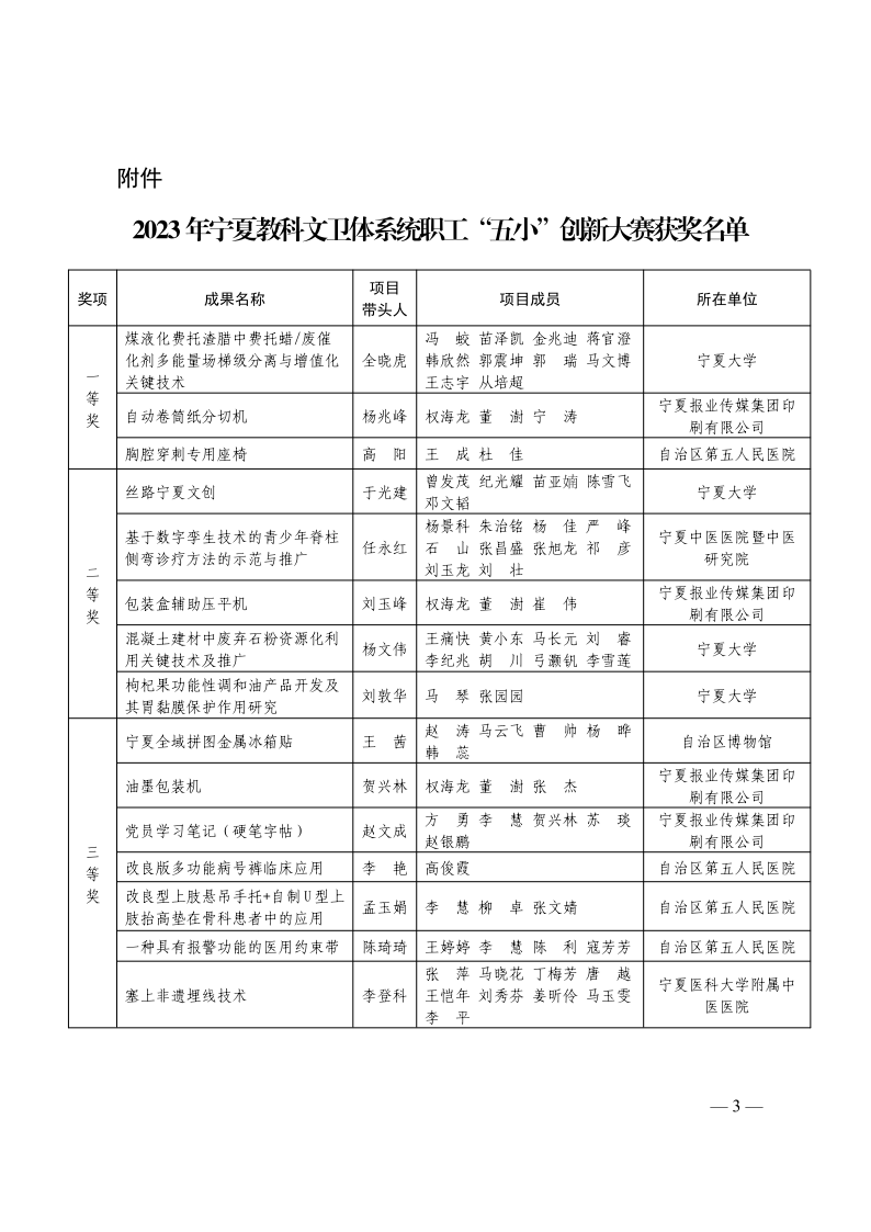 【永利集团304官网新闻中心讯 工会】近日,永利教职工在宁夏教科文卫体系统职工“五小”(小革新、小发明、小改造、小设计、小建议)创新大赛活动中斩获佳绩。创新创业学院全晓虎团队荣获一等奖,民族与历史学院于光建团队、土木与水利工程学院杨文伟团队、食品科学与工程学院刘敦华团队荣获二等奖,全晓虎团队还荣获了全区“五小”创新大赛三等奖。
