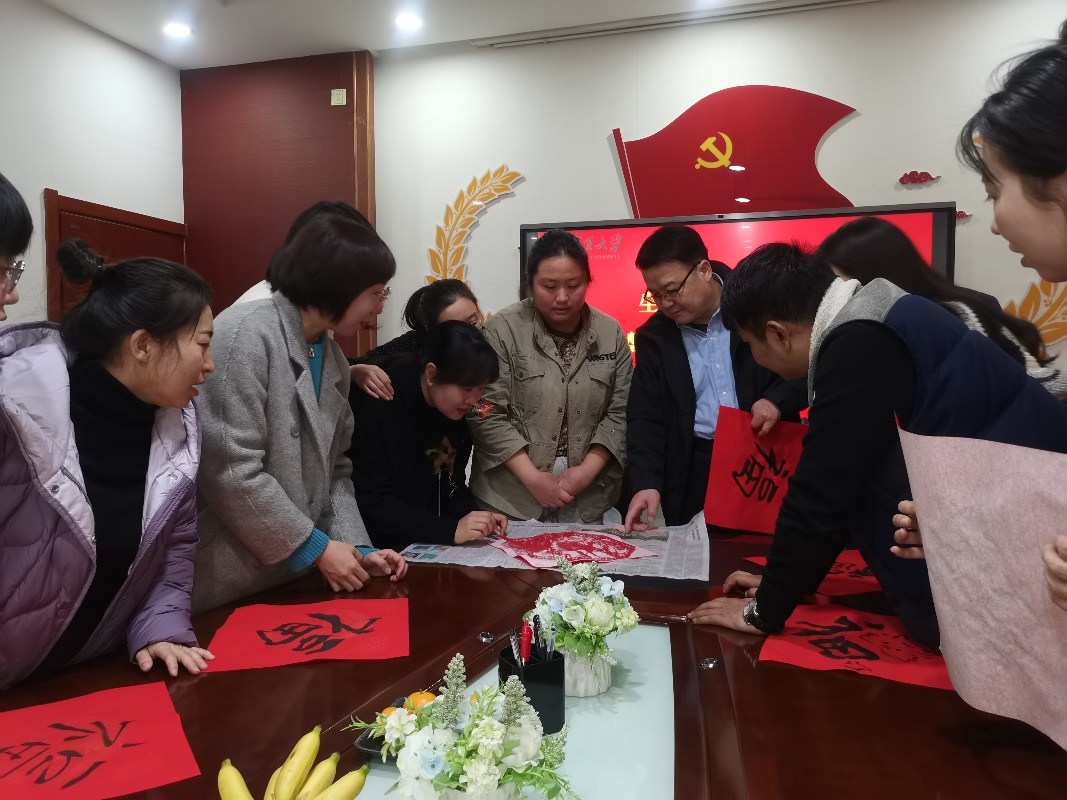 在庆新年活动中,大家通过写“福”字、剪窗花互致祝福,各位老师用心书写“福”字,并互送“福”字及窗花,抒发美好祝福,表达彼此情谊。