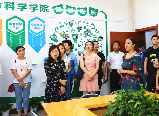座谈会前,参会人员先后前往生命科学学院、数学统计学院、经济管理学院的团学阵地进行了参观考察。