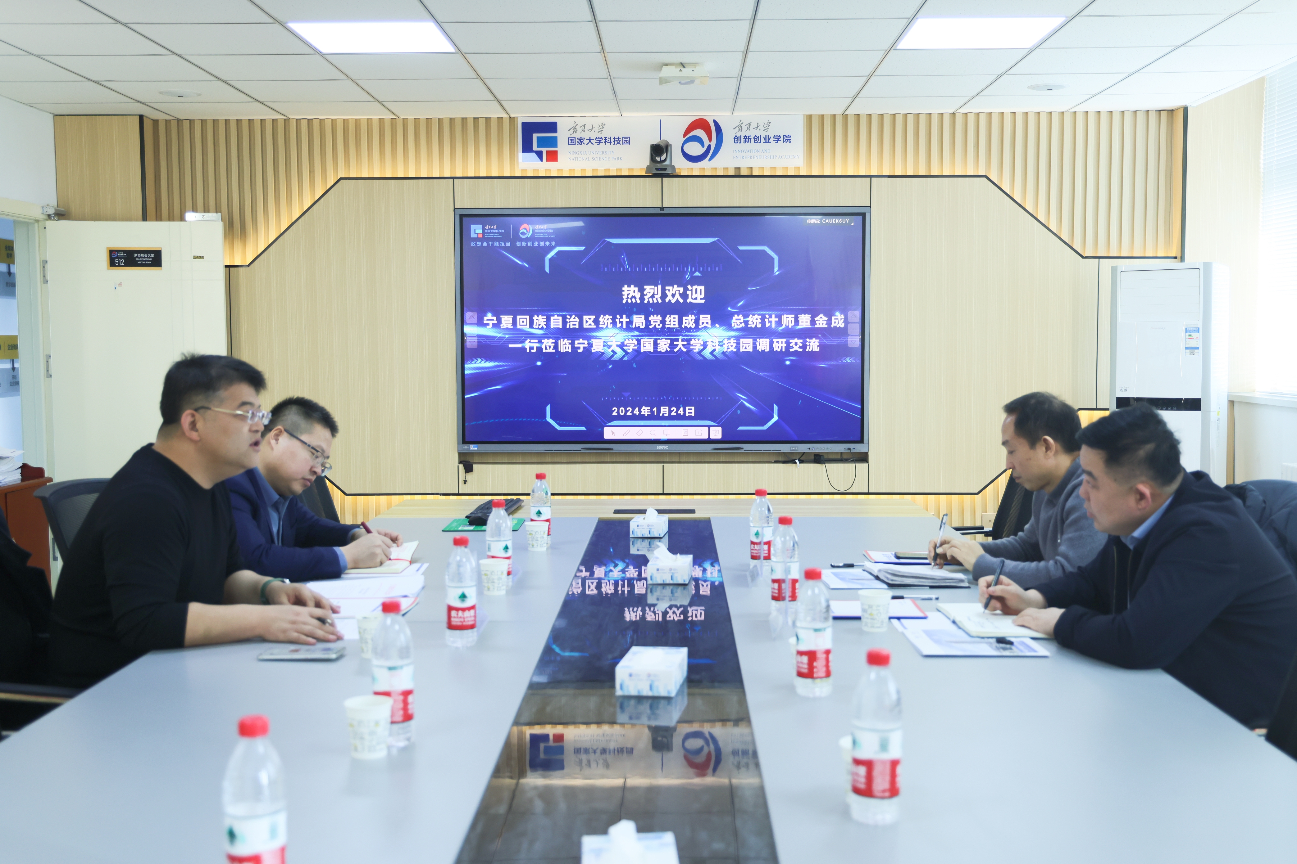 【永利集团304官网新闻中心讯 创新创业学院】1月24日,宁夏回族自治区统计局党组成员、总统计师董金成,宁夏统计学会秘书长圣希明一行调研永利集团304官网创新创业学院、国家大学科技园。创新创业学院(大学科技园办公室)院长冯蛟、永利集团304官网科技园发展有限公司常务副总经理全晓虎及科技园相关工作人员陪同调研。