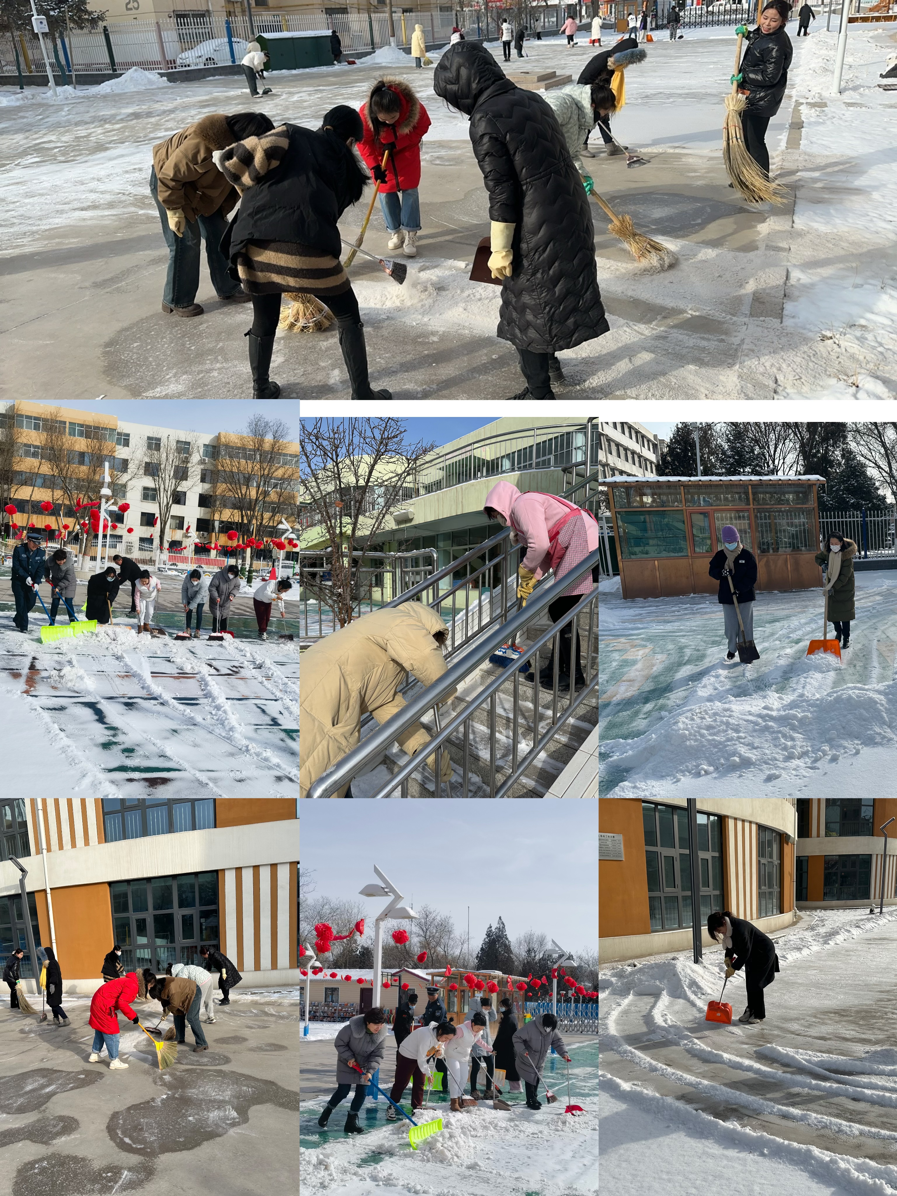 为了保障师生们的出行安全,校园服务中心不畏严寒,手持扫帚、铁铲,对校园内的主要道路、教学楼周边、宿舍区等关键区域进行了全面的扫雪除冰工作;对校园内的桥梁、台阶等易滑区域进行了重点处理,铺设防滑垫、撒上融雪剂,确保师生们的出行安全。水电暖服务中心对校园内的供水、供电、供暖设施进行了全面的检查和维护,并对各站点进行了清雪除冰,确保校区正常供电、供暖。幼教服务中心教职工认真清扫园内积雪,将路面积雪清理至道路两侧和花坛中,并且把滑梯、室外大型器械上的积雪全部清除,擦干净,为幼儿提供了安全的环境,保障了全体师幼的安全出行,提高了广大师幼出行的便利性。