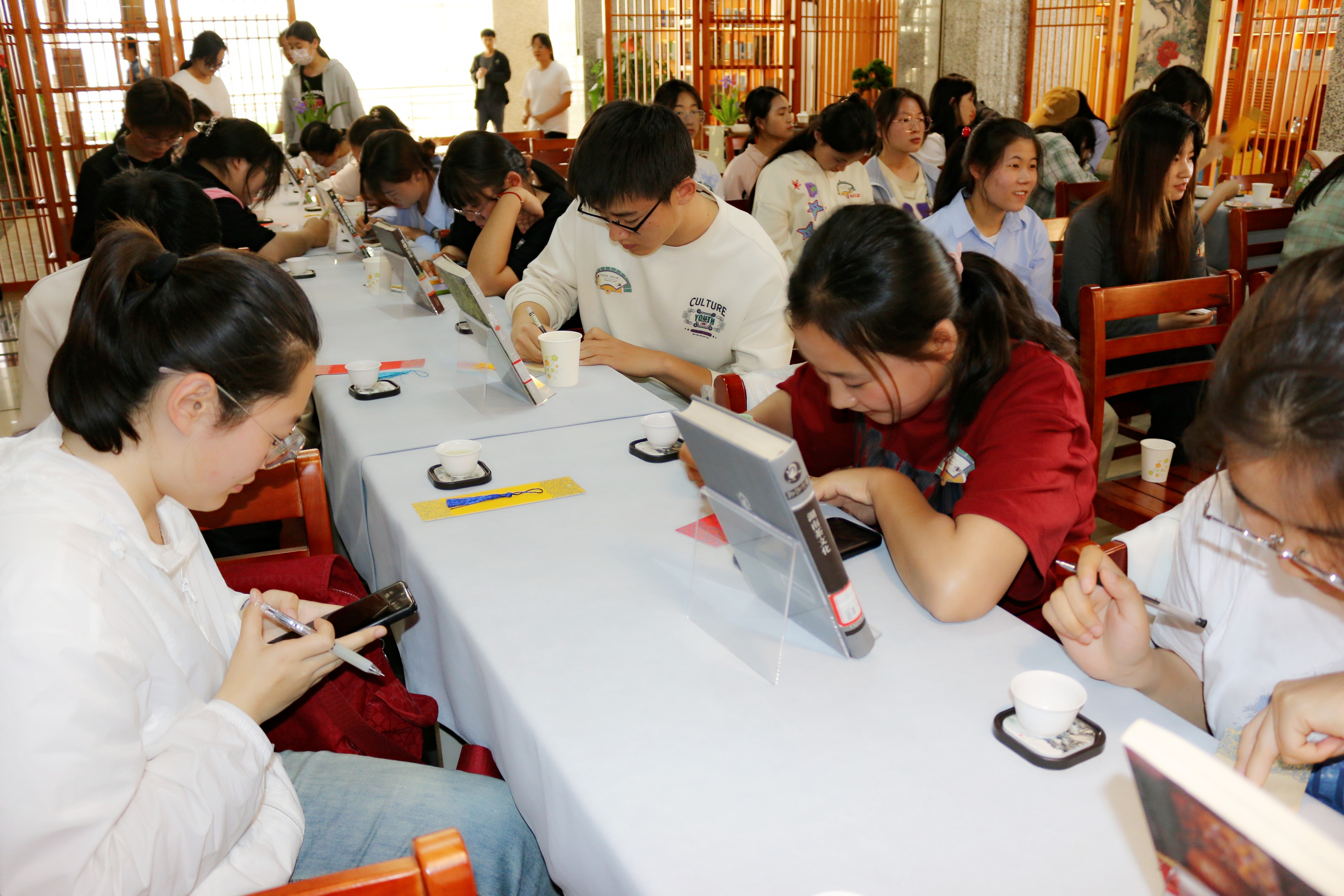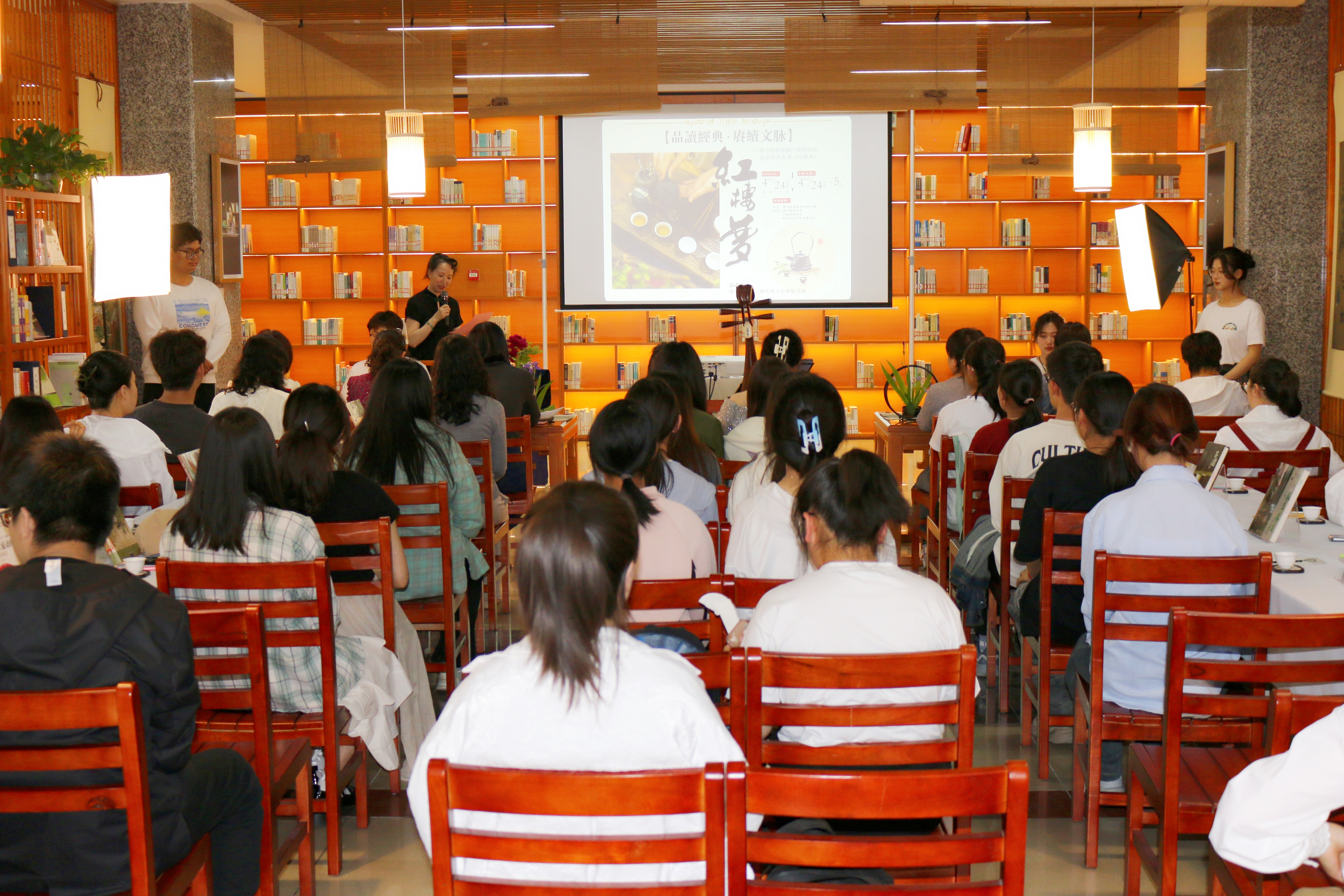 活动围绕《红楼梦》主题,通过茶艺演绎、读书分享、专题书展、馆藏资源推介等方式品读经典名著《红楼梦》。