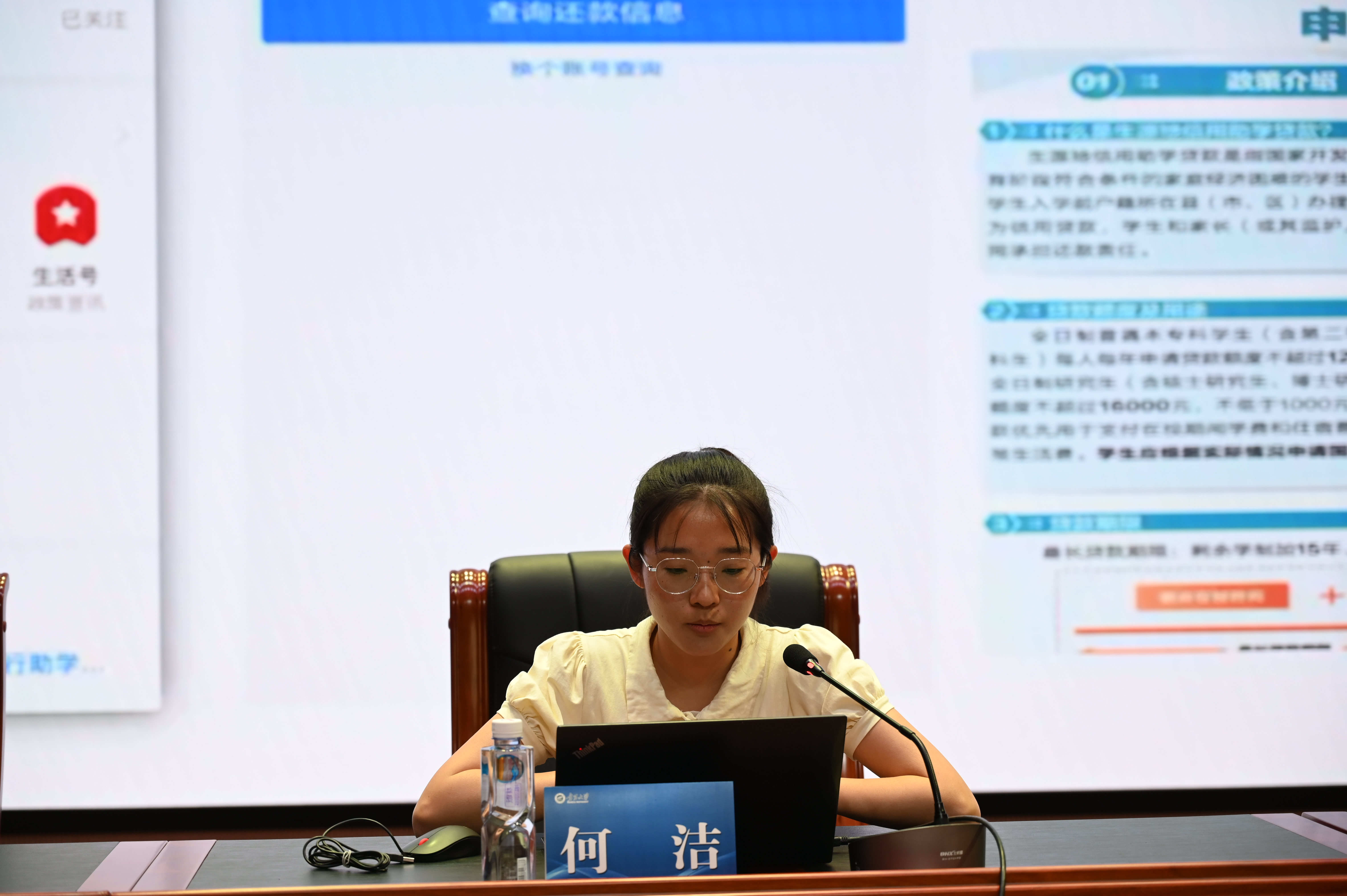 会上,国家开发银行宁夏分行何洁从申请指南、发放指南、还款指南及征信意识四个方面详细解读生源地助学贷款全流程政策要求,同时介绍了学生在线服务系统的使用方法、国开行免息及本金延期偿还范围及办理流程、非国开行生源地助学贷款申报流程等具体事项。并结合学生未及时清偿助学贷款的具体案例,强调维护个人信用的重要性,引导学生提高征信意识,主动履行贷款承诺,按时还付贷款本息。