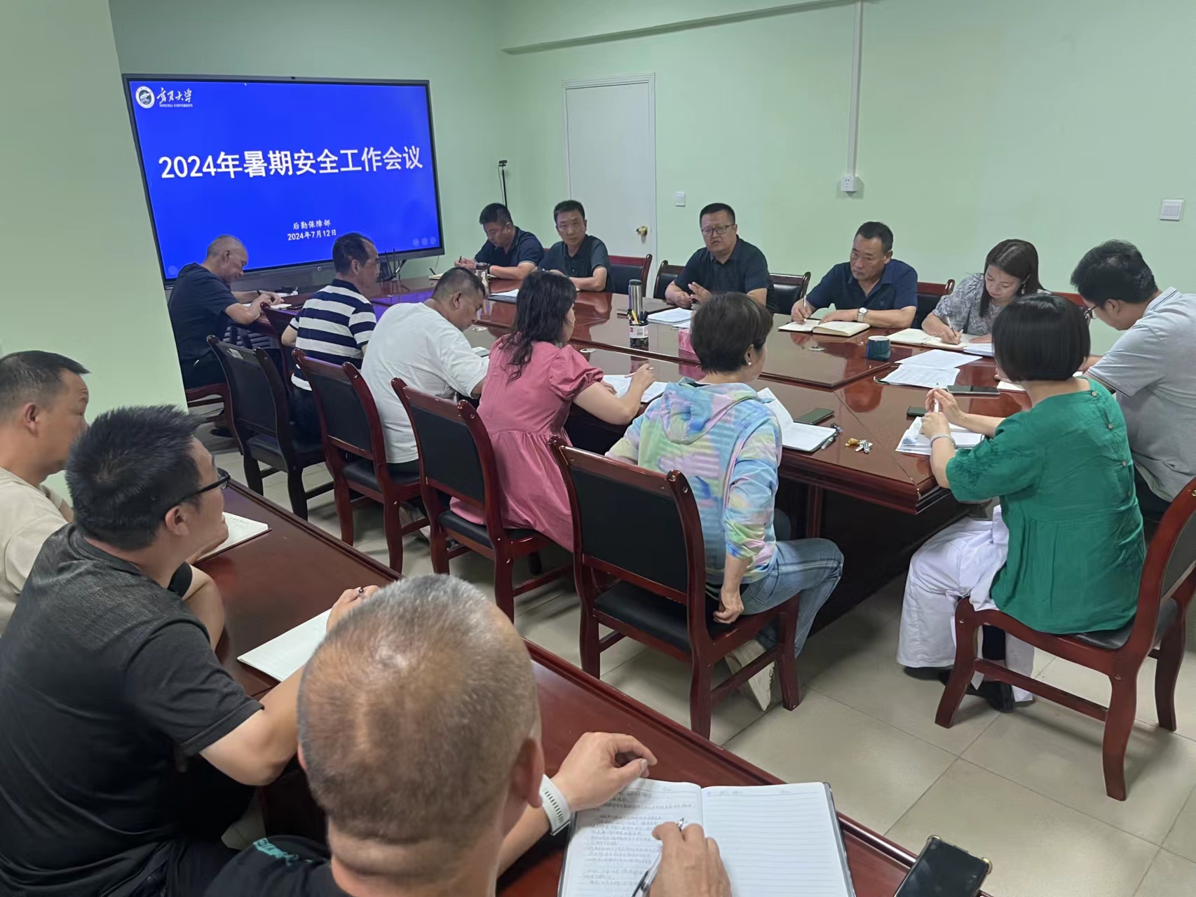 会议强调,各科室、中心结合业务工作,根据学校关于开展重大事故隐患自查的通知精神,认真开展自查,建立重大隐患台账;小型维修工程施工过程中要加强对施工现场的安全管控,所有工作人员要对建筑改造、用电安全、高空作业等方面做好安全隐患排查,避免意外事故发生;饮食服务中心做好档口、餐厅的引进招商工作,严格执行引进流程,确保合法合规,务必保证秋季开学按时供餐;做好校园绿化美化工作,积极关注朔方校区楼宇保洁及室外保洁工作;后勤职工要做好假期值班工作,坚守岗位、尽职尽责,遇有紧急情况第一时间报告、第一时间处置,妥善化解矛盾纠纷,守牢安全底线,全力维护学校的和谐稳定。