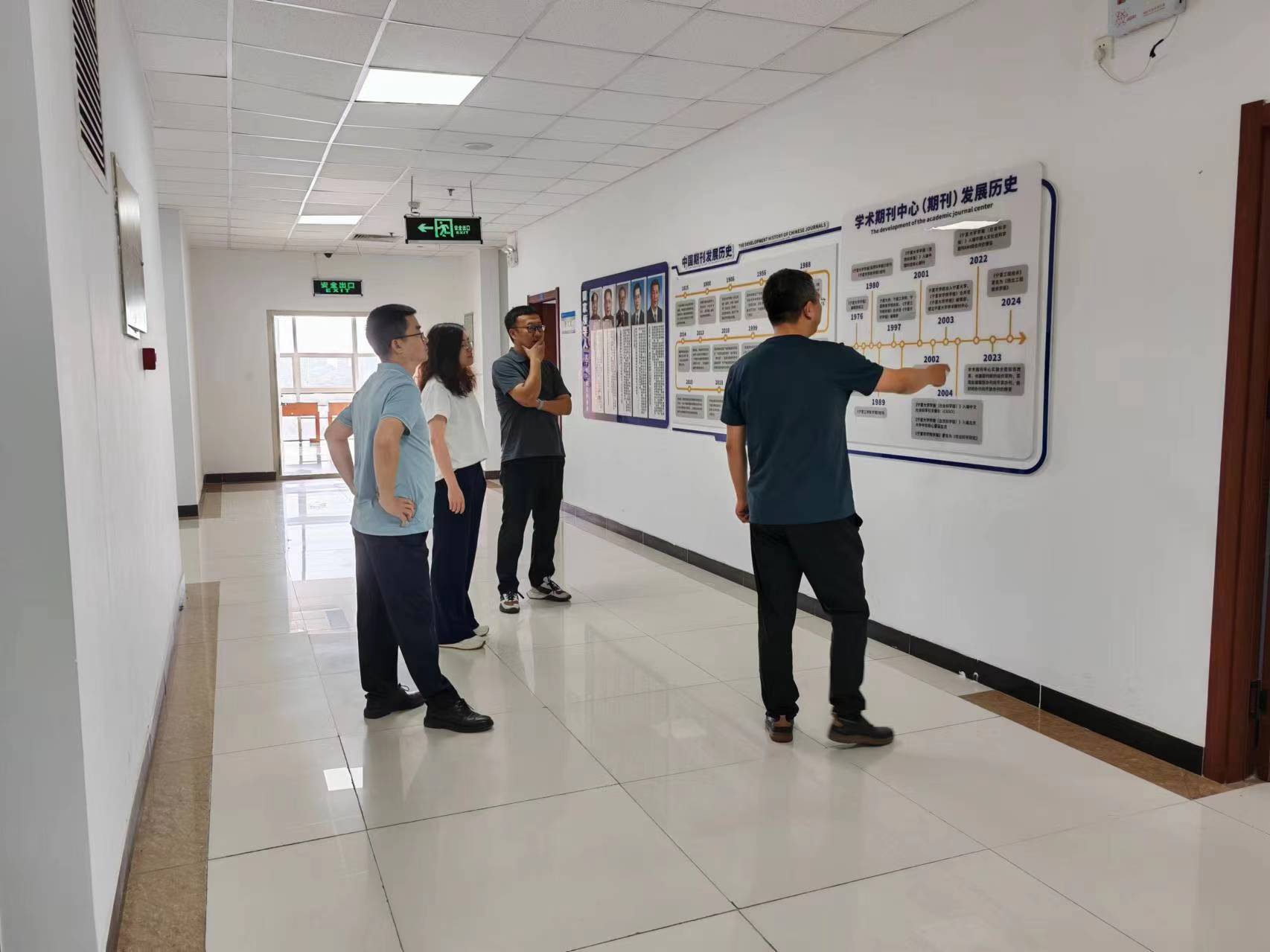 会前,刘翔宇、钱容德、张刚陪同唐竞参观了中心文化墙,介绍了中心文化理念和发展历程及编辑团队等情况。