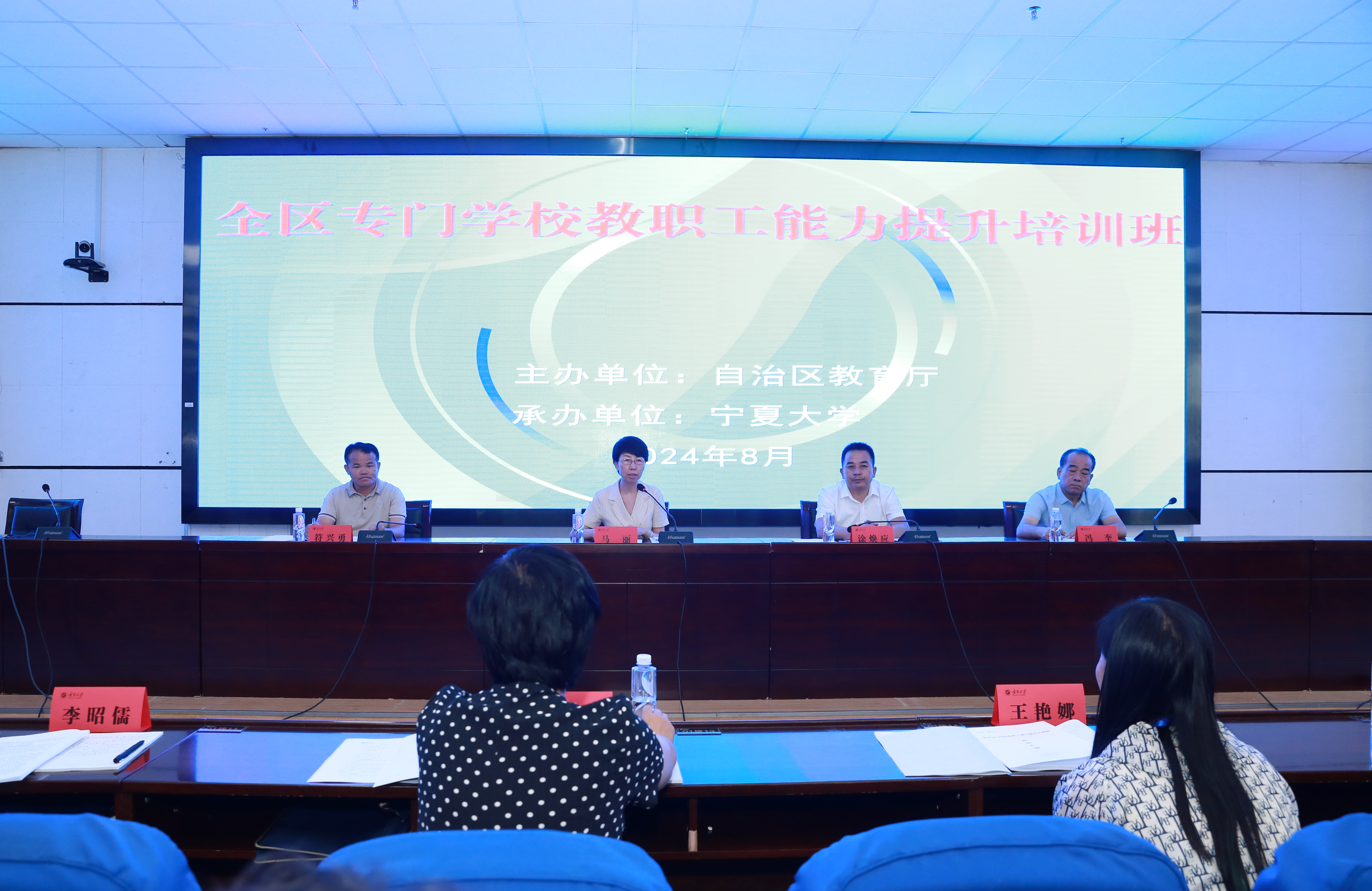 【永利集团304官网新闻中心讯 终身教育学部】8月15日,由自治区教育厅主办、永利集团304官网承办的全区专门学校教职工能力提升培训班顺利开班。自治区教育厅党组成员、副厅长马丽,自治区教育厅基础教育处处长涂焕应,永利集团304官网终身教育学部党总支书记、宁夏高等学校师资培训中心主任冯奎出席开班仪式。来自全区五市教育局、部分县(区)教育局相关部门负责人和首期设在石嘴山、固原两市两所专门学校的70余名教职工参加培训。涂焕应主持开班仪式。