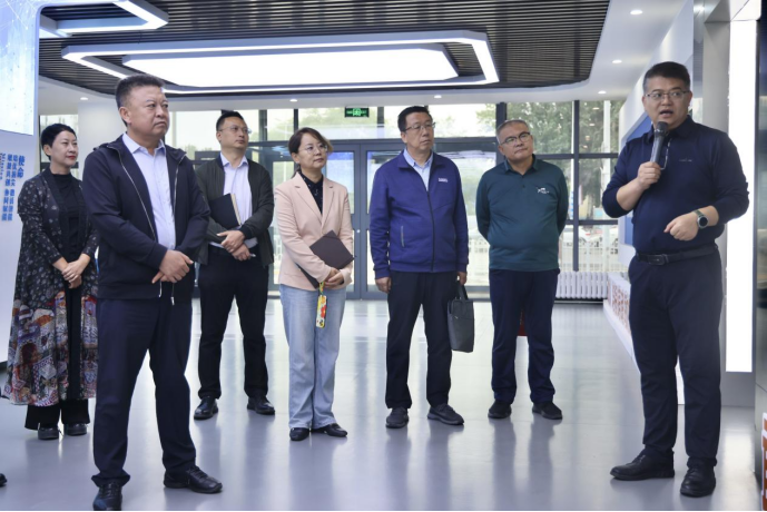 张桓一行参观了学院数字化展厅、数字化模拟实验室、创客咖啡、创客书吧等空间,详细了解校企合作项目“宁夏智慧文旅大数据平台”以及基于文旅大数据的数字人产品、大学科技园入孵企业宁夏极客空间建筑科技有限公司核心产品葡藤板和智慧印控仪。冯蛟介绍了创新创业学院与大学科技园在创新创业教育实践基地建设、数字化创新创业微专业打造、科技成果转化与科技企业孵化等方面取得的成效,并就创新创业学院治理体系建设与管理模式总体情况作了汇报。