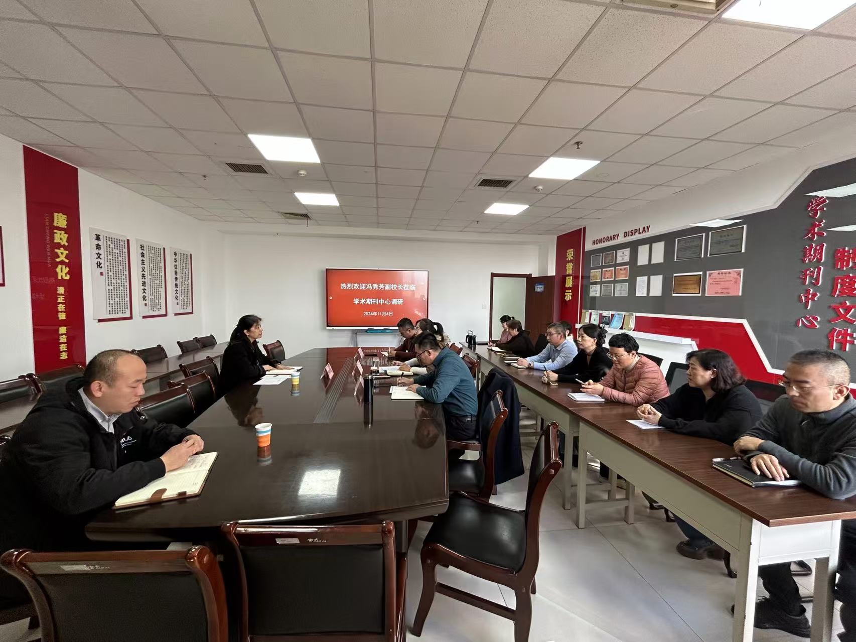 会前,在中心负责人及《西北工程技术学报》执行副主编张刚的陪同下,冯秀芳参观了中心文化墙,详细了解了中心文化理念、发展历程、编辑团队及期刊主编团队等情况。会上,奥海玮汇报了中心基本情况、2024年工作开展情况、存在的问题和下一步工作打算。马海龙、张刚两位执行副主编分别结合自身负责的期刊进行了补充发言。