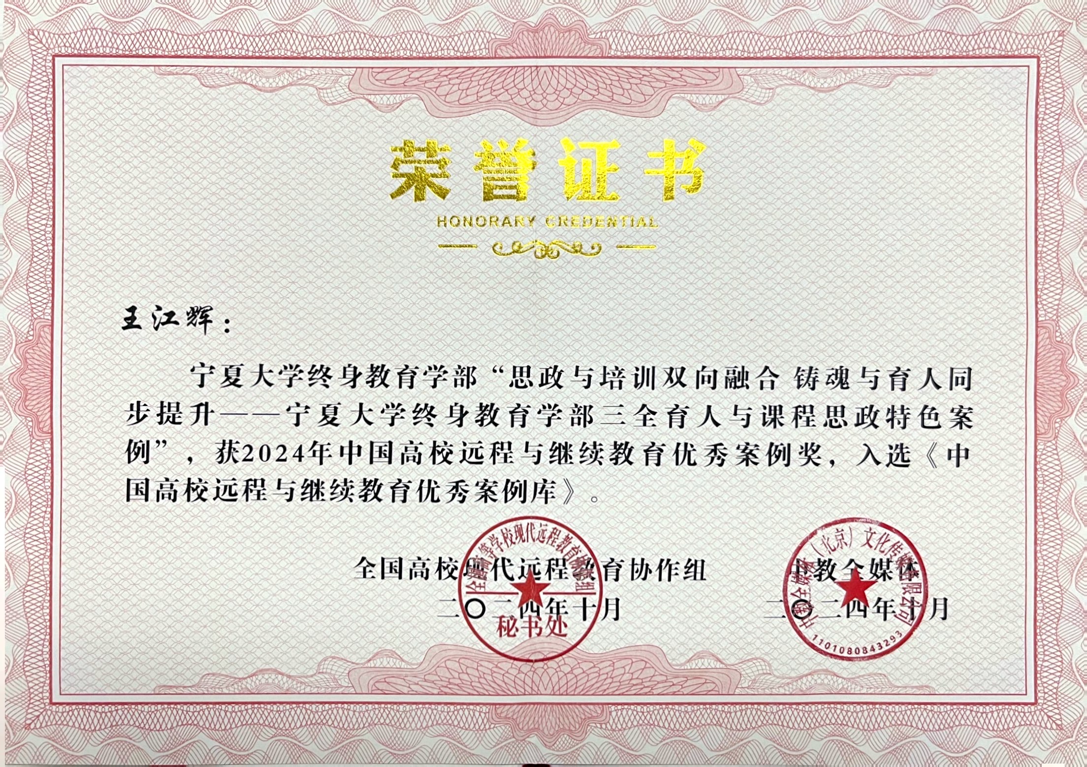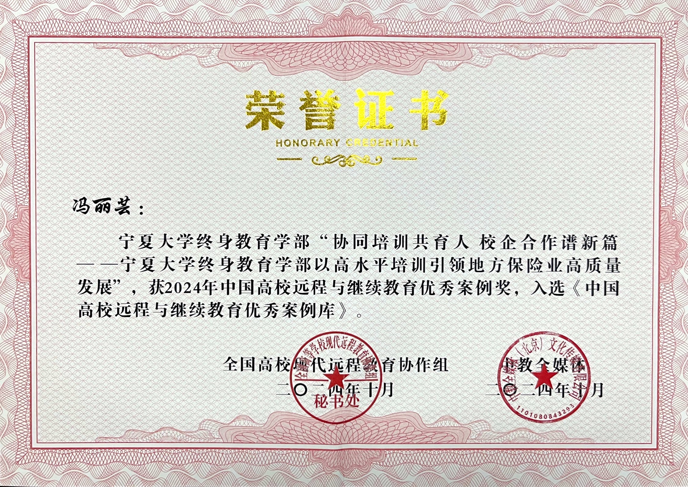 【永利集团304官网新闻中心讯 终身教育学部】10月31日-11月1日,中国远程与继续教育大会在北京召开。由终身教育学部王江辉撰写的《思政与培训双向融合 铸魂与育人同步提升——永利集团304官网终身教育学部三全育人与课程思政特色案例》、冯丽芸撰写的《协同培训共育人 校企合作谱新篇——永利集团304官网终身教育学部以高水平培训引领地方保险业高质量发展》两个工作案例入选“2024年中国高校远程与继续教育优秀案例库”。
