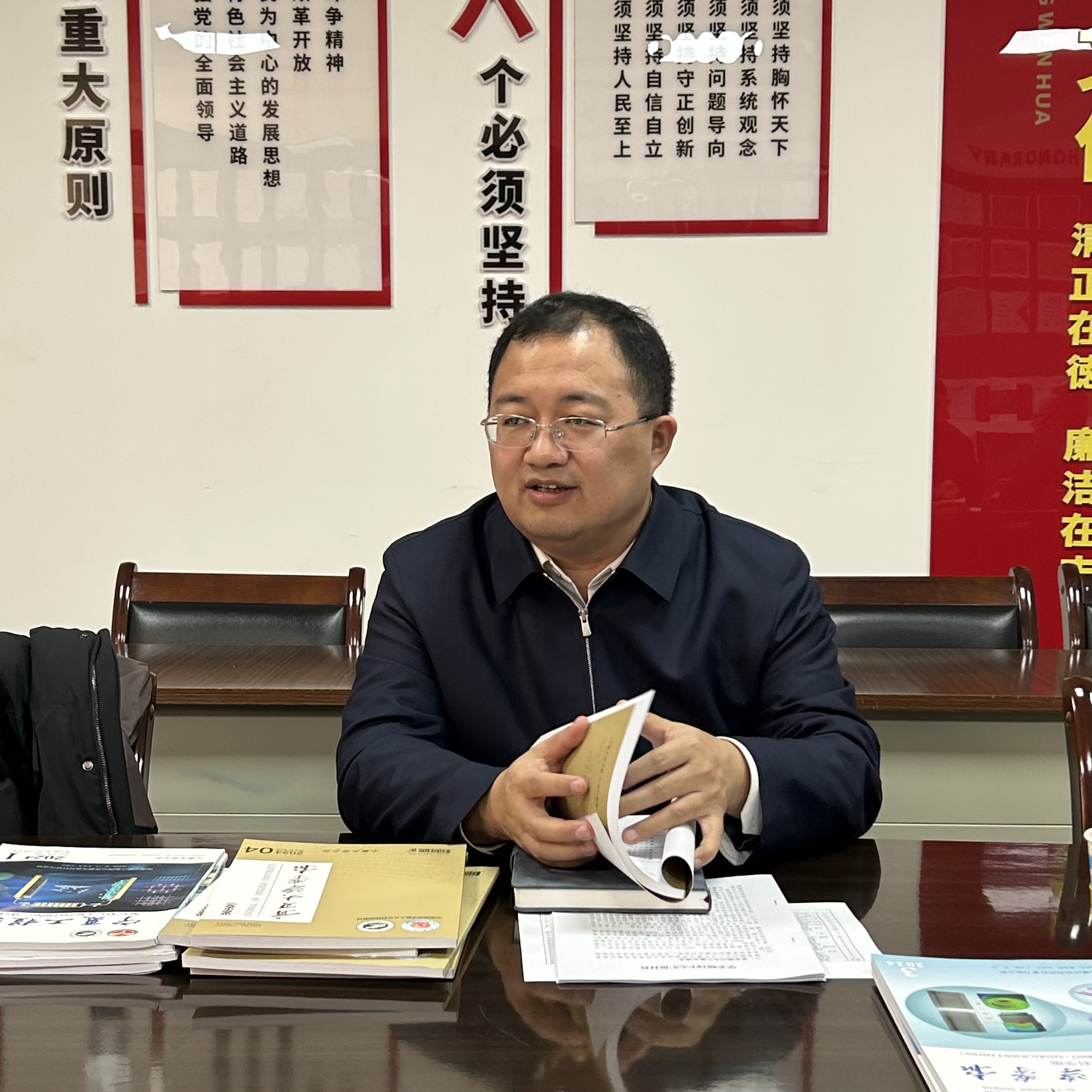 【永利集团304官网新闻中心讯 学术期刊中心】1月7日,校党委常委、副校长杨文法到学术期刊中心调研,实地走访了解老师办公环境,参观了中心文化墙,详细了解了中心文化理念、发展历程、各刊编辑团队及主编团队等情况。在中心会议室认真听取了学术期刊中心的工作汇报。