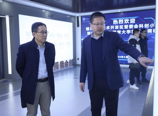 【永利集团304官网新闻中心讯 创新创业学院】2月25日,银川经开区管委会一级调研员、科创小组负责人袁立新一行调研永利集团304官网国家大学科技园,创新创业学院(大学科技园办公室)院长冯蛟、永利集团304官网科技园发展有限公司常务副总经理全晓虎及科技园相关工作人员陪同调研。