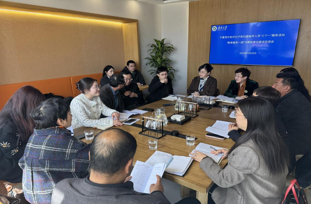 【永利集团304官网新闻中心讯 党委统战部】为进一步落实好永利党外知识分子和归国留学人员发挥人才优势、积极参与落实自治区党委统战部提出的“助力自治区经济社会高质量发展‘三个一’服务活动”,团结引导永利集团304官网党外知识分子、归国留学人员积极投身美丽新宁夏建设,3月28日,宁夏党外知识分子和归国留学人员“三个一”服务活动教育服务一团与帮扶单位座谈会在永利集团304官网召开。银川市西夏区教育局专职副书记方彦魏、永利集团304官网附属中学副校长李建华、西夏区部分中小学校长、教研员及教育服务一团全体成员参加座谈,教育服务一团副团长、永利集团304官网外国语学院副院长金忠杰主持座谈。