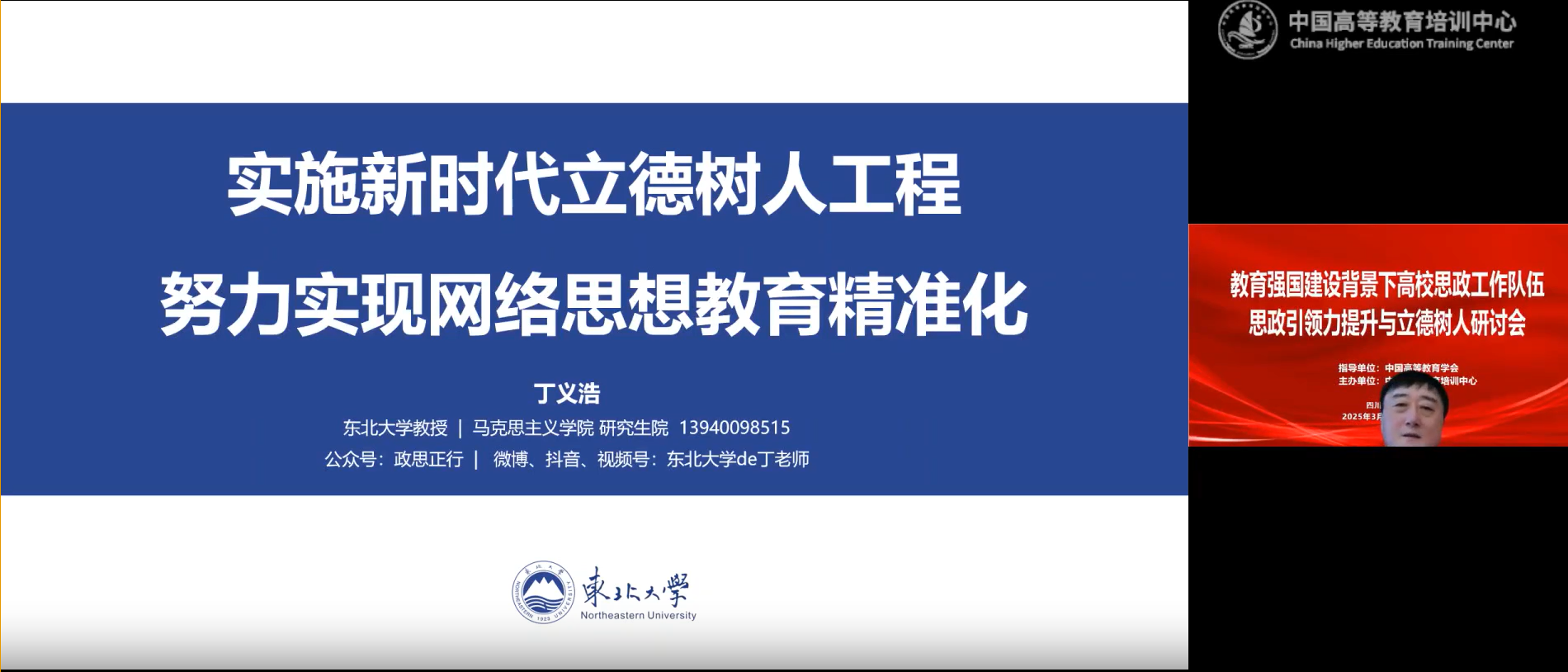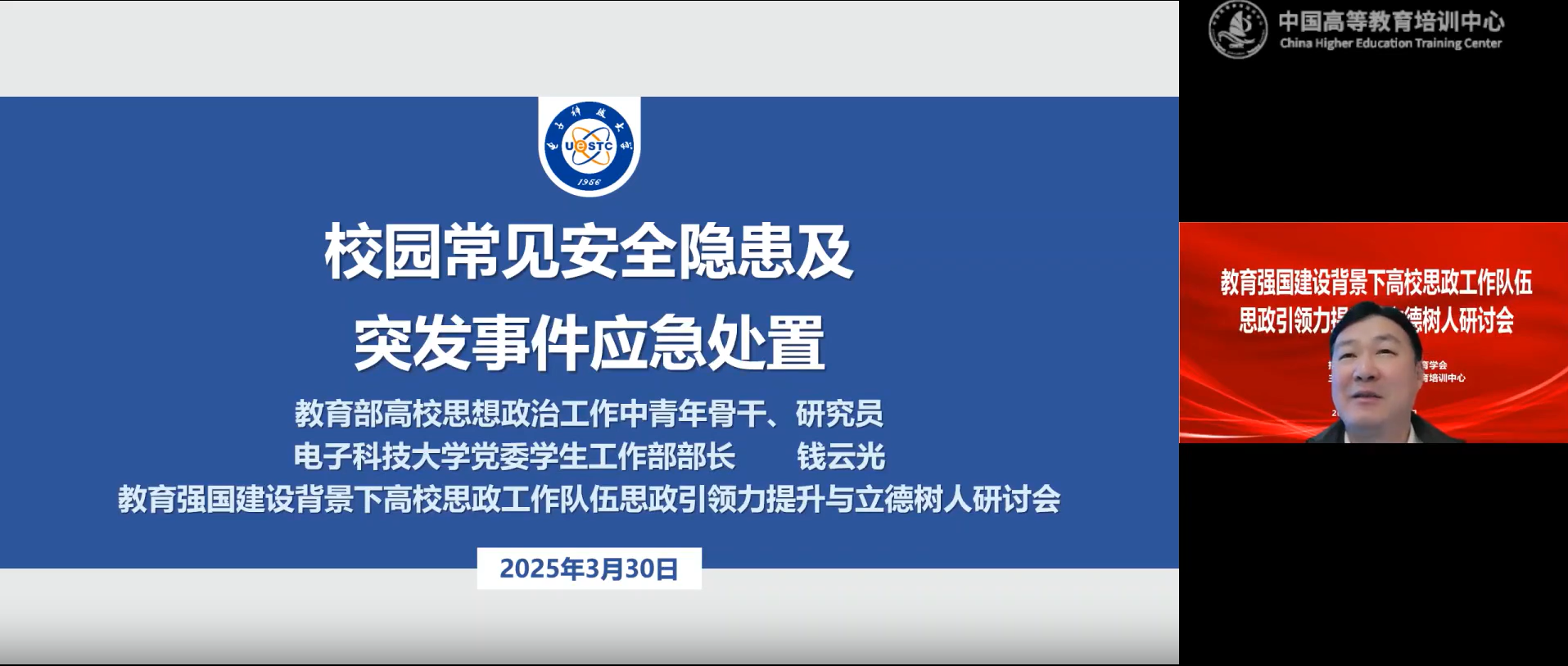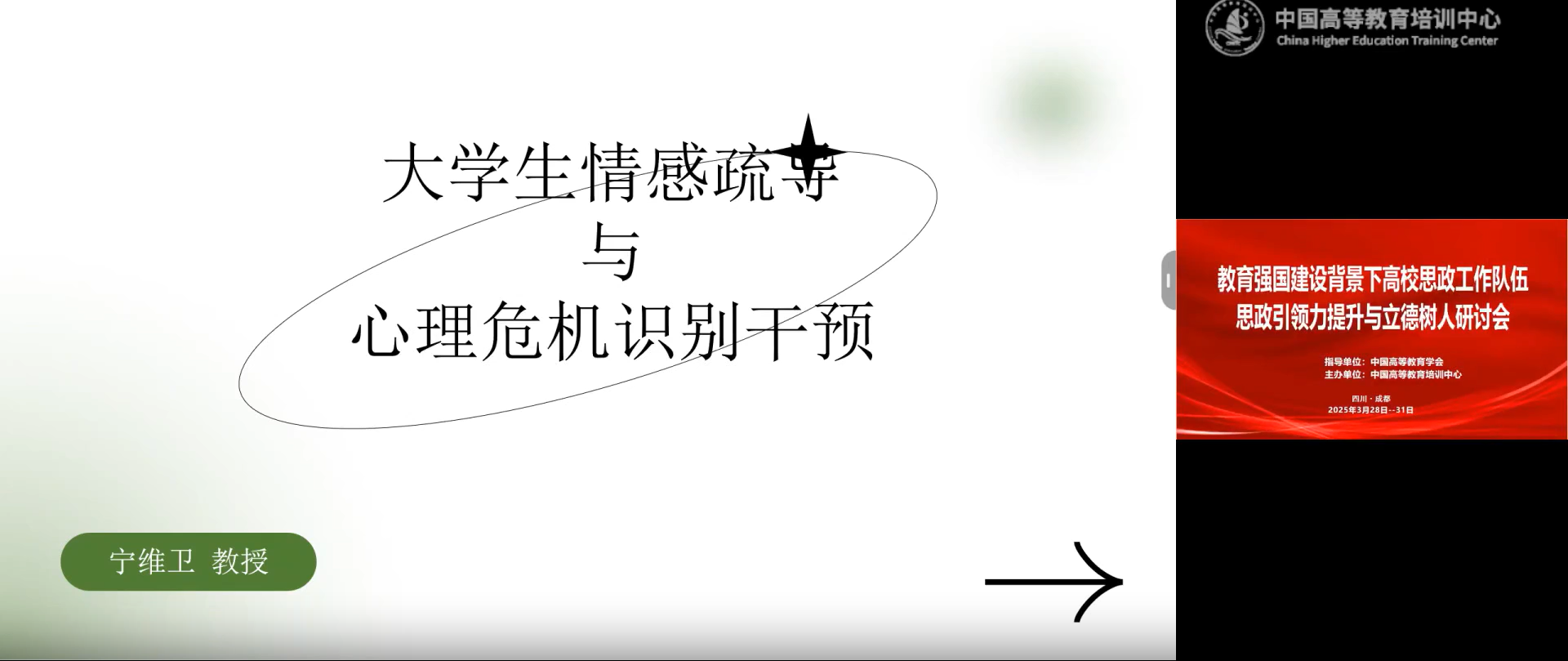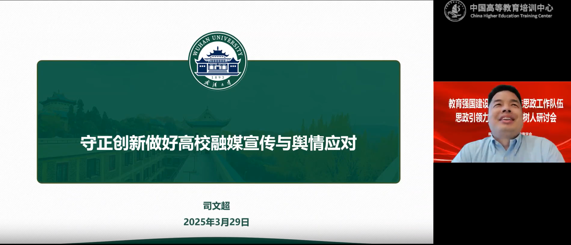 【永利集团304官网新闻中心讯 党委学生工作部】为深入贯彻落实党的二十届三中全会和全国教育大会精神,认真学习领会第二十八次全国高校党的建设工作会议精神,切实加强新时代学校思想政治教育队伍建设,全面提升辅导员、班主任队伍的思想政治素养与育人能力,3月29日至30日,永利集团304官网联合中国高等教育学会,通过在线直播的形式,组织开展教育强国背景下学工队伍思想政治引领力提升与立德树人专题培训。