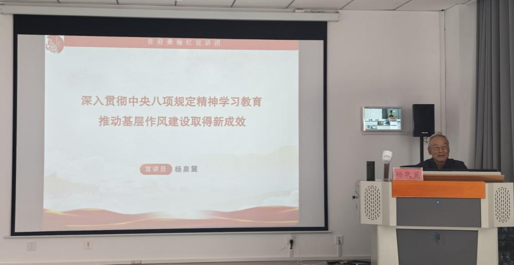 军休宣讲团团长杨泉麓围绕深入贯彻中央八项规定精神学习教育进行现场宣讲授课。