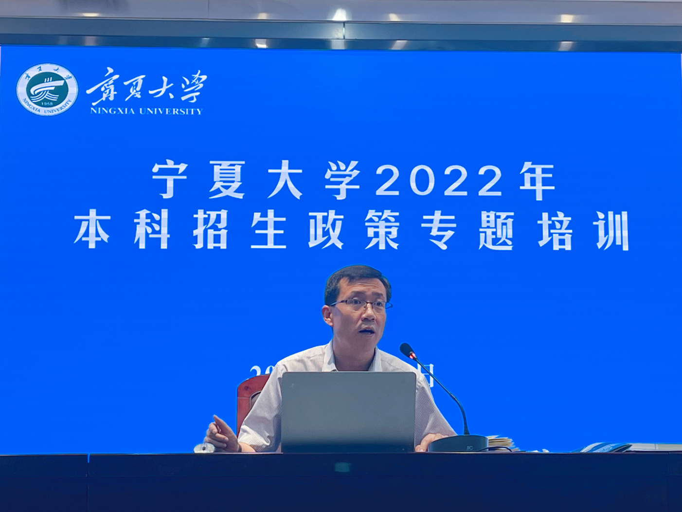 【永利集团304官网新闻中心讯 本科生院】为做好2022年本科招生宣传工作,6月16日,永利本科生院在贺兰山校区德勤楼六楼会议室组织召开了2022年本科招生政策专题培训会。此次培训由本科生院副院长、招生与学籍管理办公室常务副主任赵亚峰主讲。学校本部各学院招生宣传负责人现场参加了培训,中卫校区各学院通过“腾讯会议”线上参加培训。