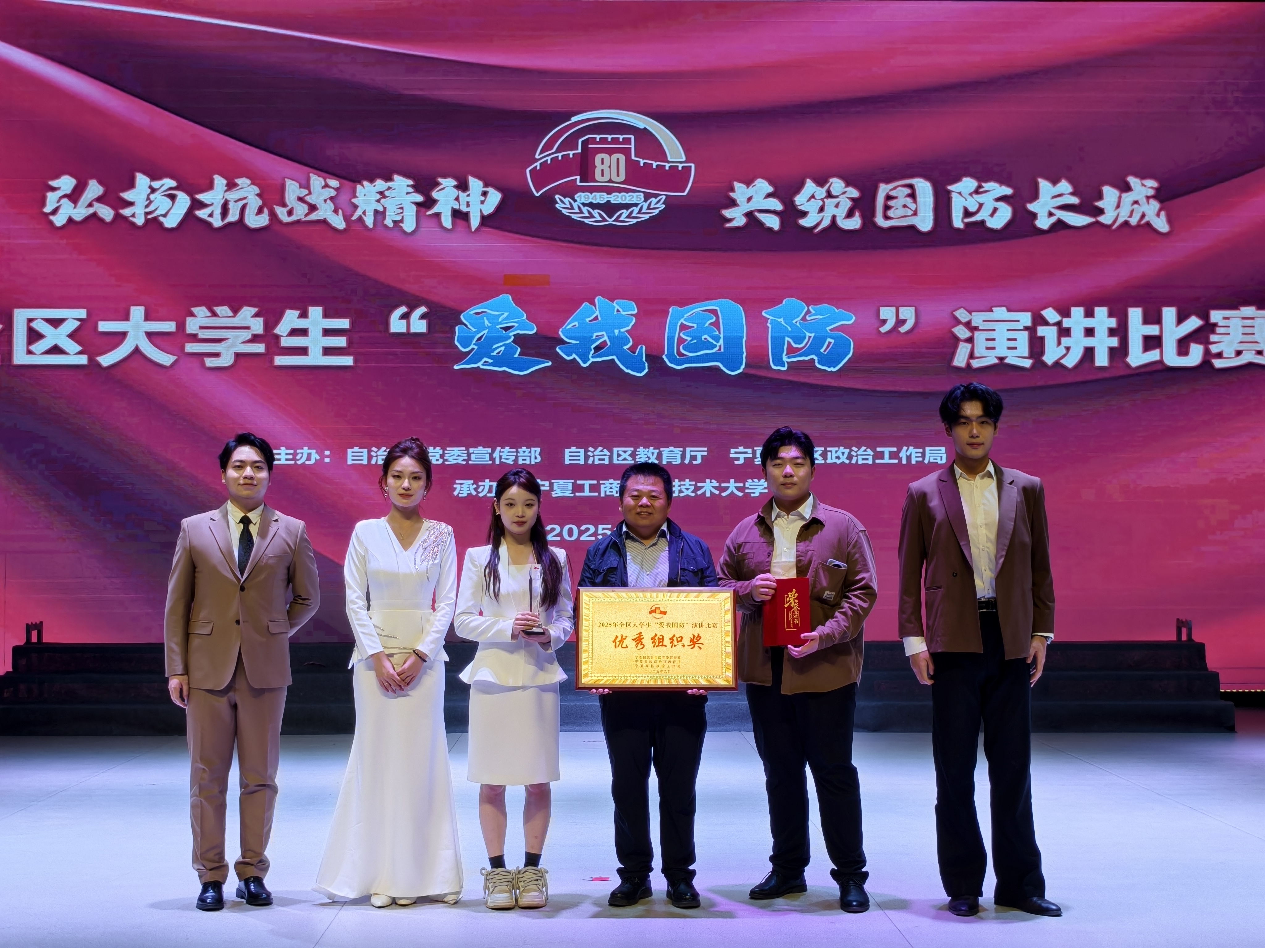 【永利集团304官网新闻中心讯 人民武装部(国防教育教学中心)】9月26日,由自治区党委宣传部、自治区教育厅、宁夏军区政治工作局共同主办的2025年全区大学生“爱我国防”演讲比赛决赛在宁夏工商职业技术大学圆满落幕。永利选送的作品《一代人有一代人的国防情》从参赛的全区19所高校中脱颖而出,荣获一等奖,学校荣获优秀组织奖。
