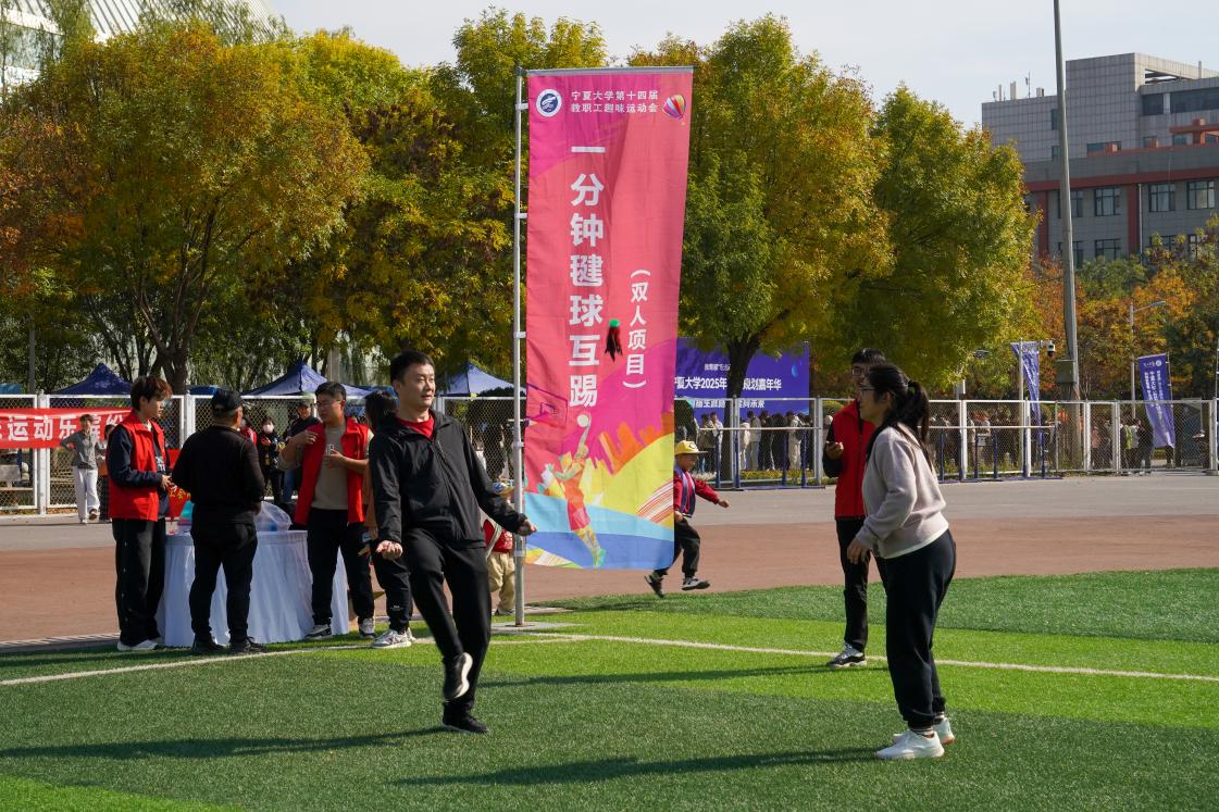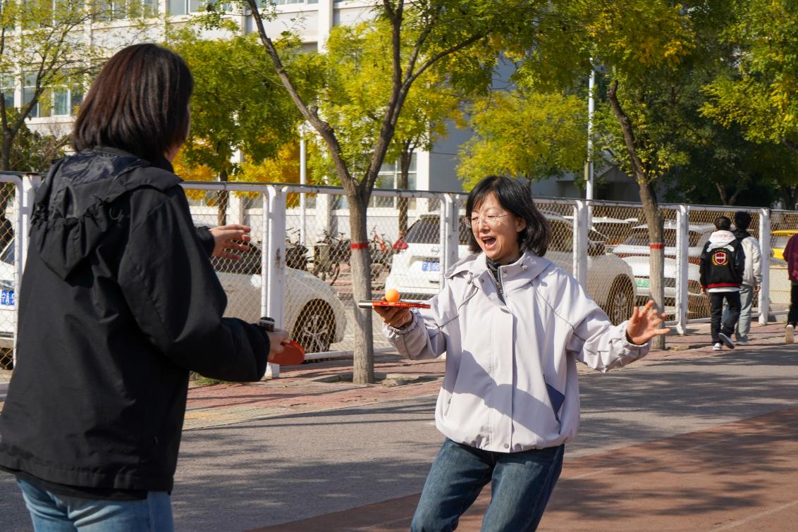 个人项目同样精彩纷呈。“双人投壶”“你来比划我来猜” 考验搭档间的默契,选手们或精准投壶、或生动比划,展现出良好的协作意识;“双人投篮”“足球踢靶”“校园保龄球” 等项目点燃教职工运动热情,大家瞄准目标、全力投掷,享受运动带来的快乐;“一分钟毽球互踢”“跳绳计数挑战”“校园颠球王” 则聚焦技巧与耐力,选手们专注投入,不断突破自我;“抠糖饼”“纸飞机穿环”“电臀达人” 等趣味项目更是让现场氛围持续升温,教职工们在欢声笑语中放松身心,收获乐趣。