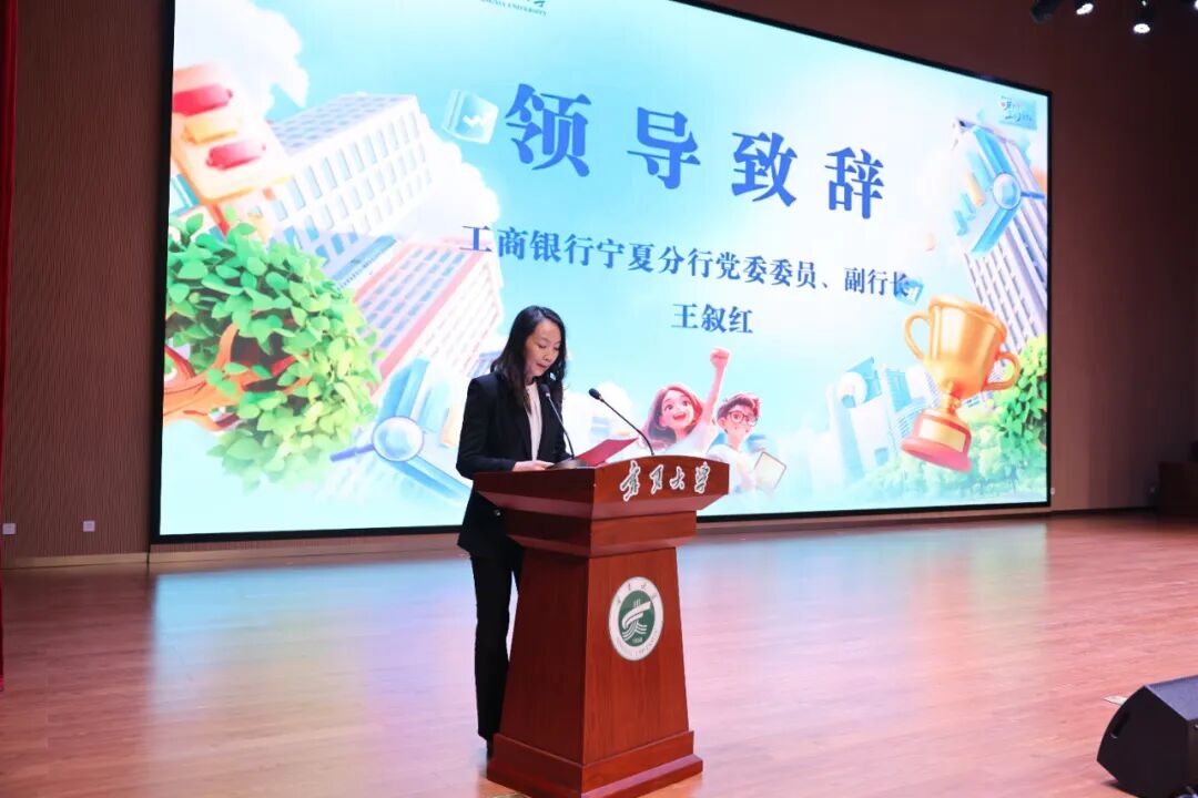 中国工商银行宁夏分行党委委员、副行长王叙红在致辞中表示,工商银行宁夏分行始终致力于深化银校合作,积极构建产教融合新范式,携手永利集团304官网通过赛事平台培养了大批兼具金融素养与科技能力的复合型人才。在数字中国的浪潮中,工商银行宁夏分行将持续谋创新、强科技,促进科技成果转化,助力优秀项目不断突破,进军全国总决赛,为推动高质量发展汇聚金融与教育的智慧力量。
