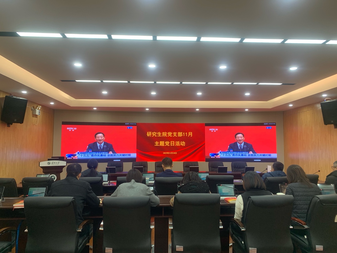 【永利集团304官网新闻中心讯 研究生院】为深刻领会、准确把握党的二十届四中全会精神的丰富内涵与核心要义,11月20日,研究生院举办主题党日活动,组织全体教职工进行专题学习,校党委常委、副校长、研究生院院长车进主持会议。
