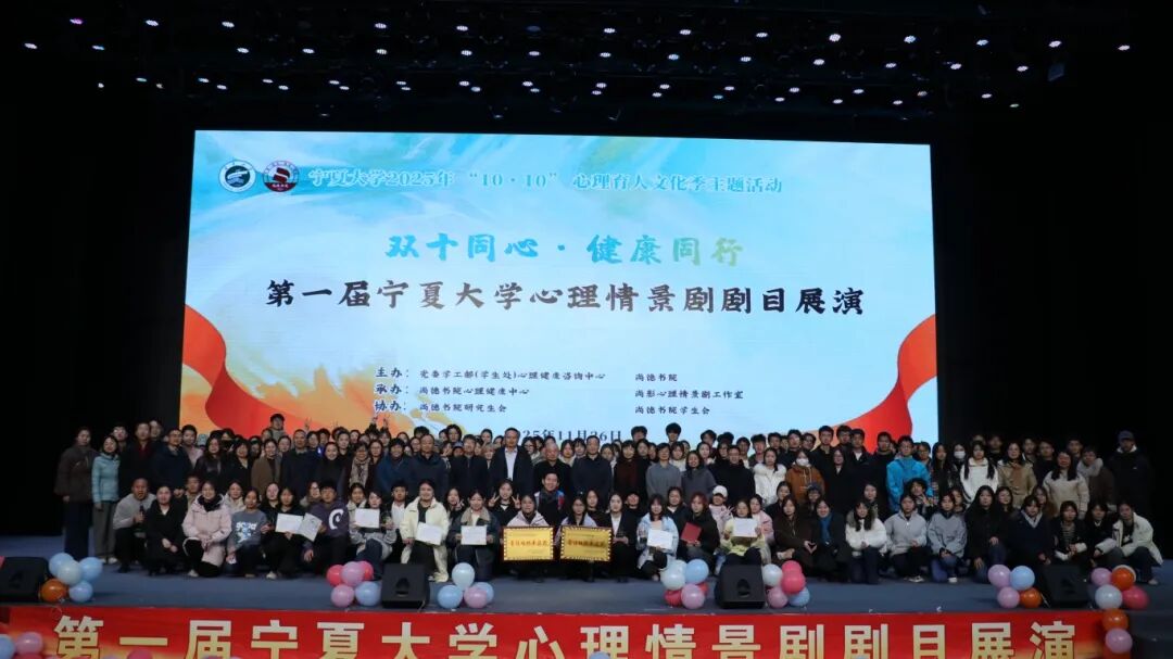 【永利集团304官网新闻中心讯 党委学生工作部】永利2025年“10·10”心理育人文化季期间,为丰富心理育人载体,营造积极健康的校园氛围,11月26日,由永利集团304官网学生心理健康咨询中心主办的永利集团304官网第一届心理情景剧剧目展演在文萃校区大学生活动中心启幕。自治区教育厅学生处、宁夏医科大学、宁夏师范大学、北方民族大学、宁夏工商职业技术大学、宁夏工业职业学院、银川能源学院等高校相关部门领导出席活动,7位宁夏高校心理专家担任评委,各书院近2000名师生齐聚,共赴这场心灵之约。
