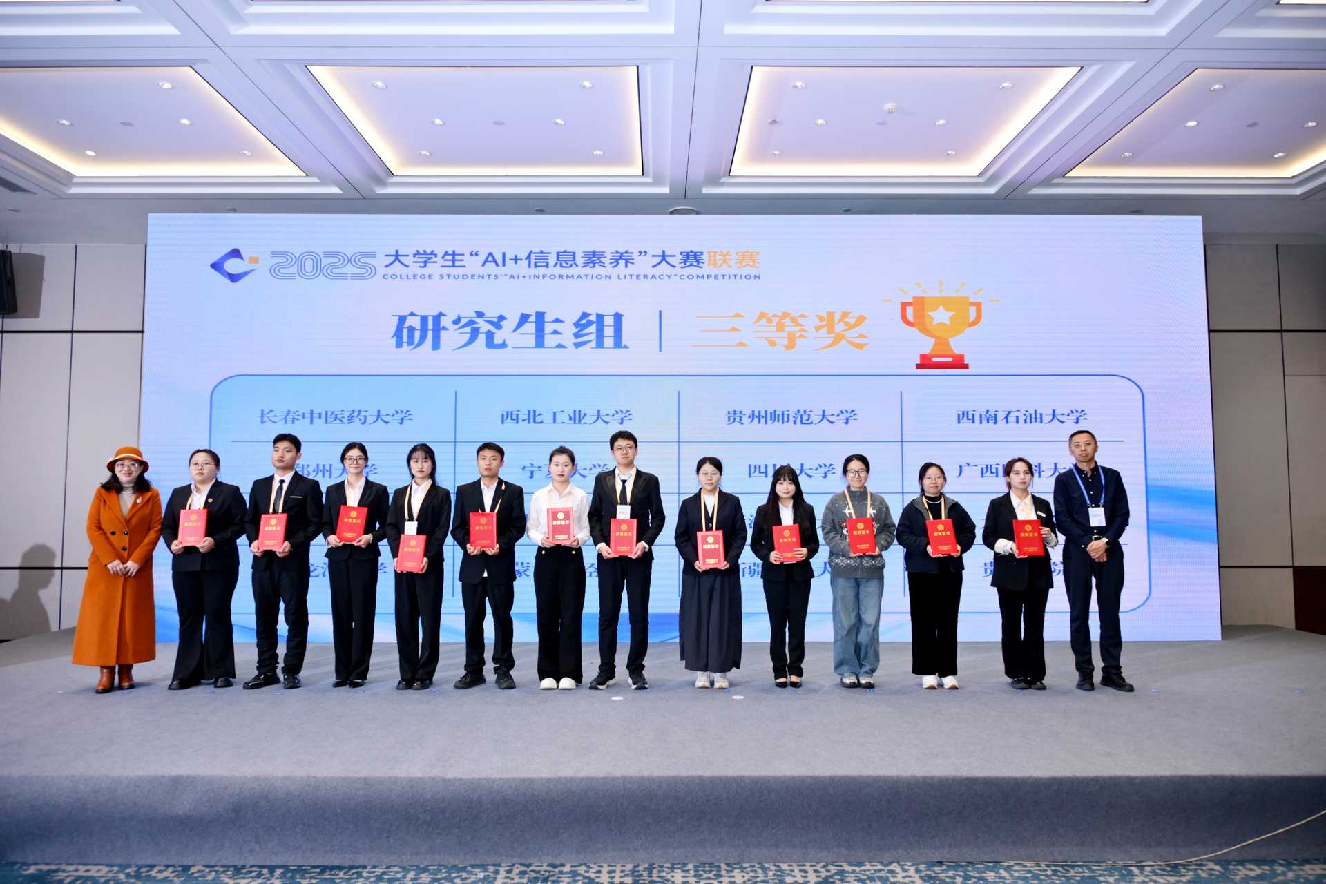 【永利集团304官网新闻中心讯 图书馆】11月27日至28日,2025年大学生“AI+信息素养”大赛联赛暨高校信息素养教育教学研讨会在成都举行,活动由教育部高等学校图书情报工作指导委员会、四川省教育厅、重庆市教育委员会指导,2025年大学生“Al+信息素养”大赛组委会主办,四川省普通高等学校图书情报工作指导委员会、四川大学、重庆市高等学校图书情报工作委员会、重庆大学承办。