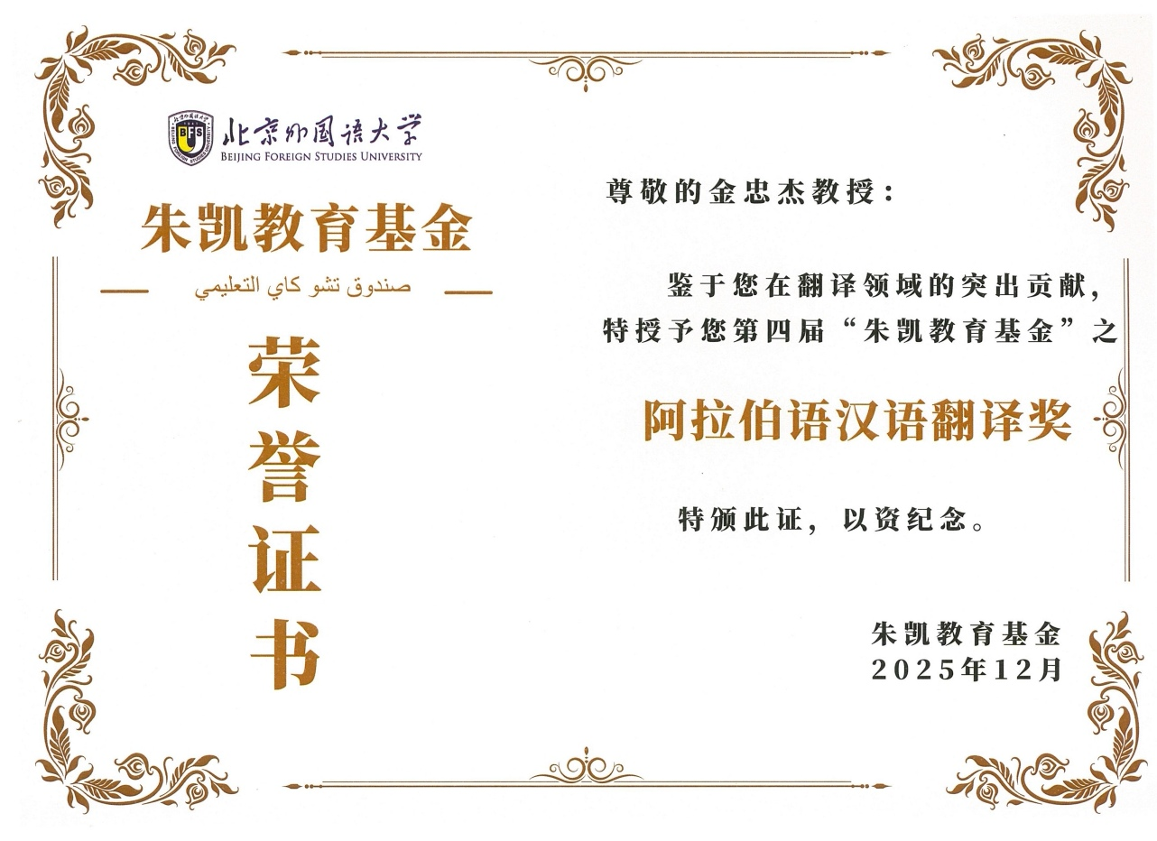 永利留学归国人员联谊会会长、外国语学院副院长金忠杰荣获第四届“朱凯教育基金”之“阿拉伯语汉语翻译奖”,金忠杰凭借对阿拉伯语和阿拉伯思想文化的深刻理解,将中世纪哲人安萨里的伦理学名著译为中文,入选商务印书馆“汉译世界学术名著丛书”,在国内学术界引起重要反响。