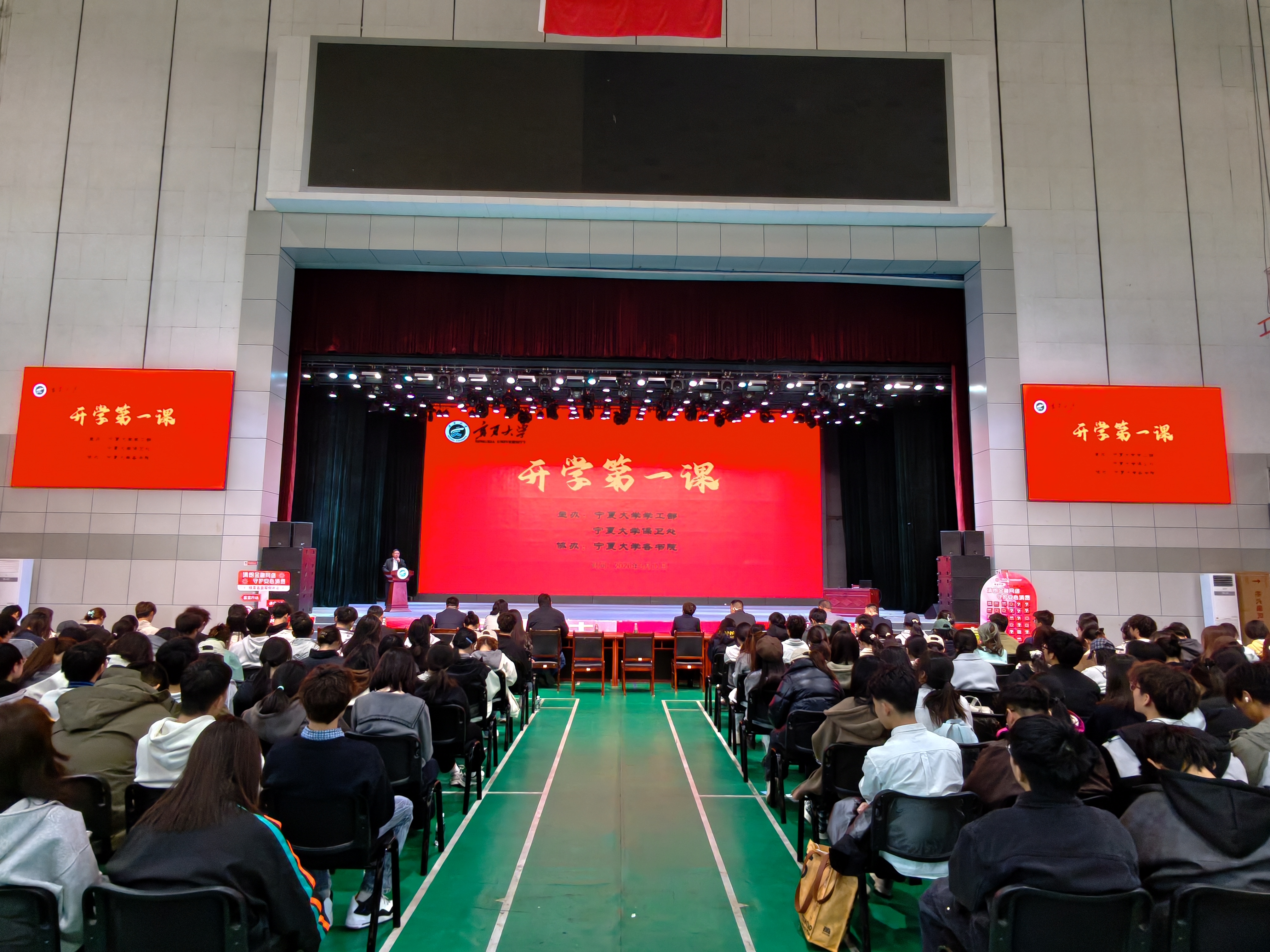 【永利集团304官网新闻中心讯 保卫处】为扎实推进平安校园建设,3月11日,永利集团304官网党委学生工作部(学生处)、校团委、保卫处联合西夏区公安分局校园警务室、中国银行西夏支行等单位,在文萃校区大学生素质教育基地举办“开学第一课”安全教育主题活动。西夏区公安分局永利集团304官网校园警务室负责人、中国银行西夏支行及学校700余名师生代表参加活动,保卫处处长李静主持活动。