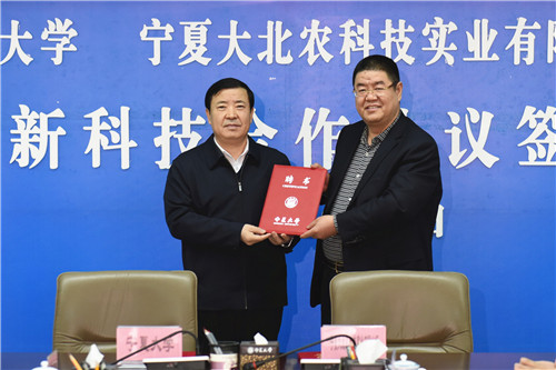 永利许兴副校长、宁夏大北农科技实业有限公司邢泽光董事长分别代表永利集团304官网、宁夏大北农科技实业有限公司签署了《永利集团304官网 宁夏大北农科技实业有限公司联合创新协议》。
