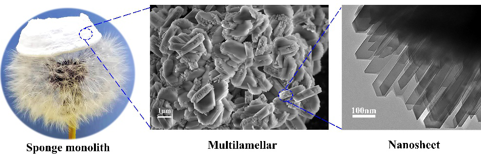 据悉,王政带领科研团队历经6年,成功开发了一条利用结构简单、商品化的结构导向剂制备纳米片层结构ZSM-5分子筛催化剂的新方法。该方法以工业试剂十六烷基三甲基溴化铵为结构导向剂,利用少量纯硅分子筛凝胶的协同作用,制备出了长度为2微米,具有多级孔结构的纳米片层结构ZSM-5分子筛单晶。该催化剂由70-100 nm厚度的苯环状纳米片沿b-轴方向有序堆积而成,并在甲醇制烯烃催化反应中表现出了高的烯烃选择性。密度泛函理论计算结果证实,十六烷基三甲基溴化铵的长链烷基(长度2.17 nm)不仅作为结构导向剂占据分子筛的直孔道,而且长链烷基的憎水性,是抑制纳米片生长和形成有序堆积的关键。该研究结果,为纳米片层结构ZSM-5分子筛催化剂在大分子催化反应中的工业应用,奠定了理论和实验基础。该研究先后获得了国家自然科学基金、宁夏自然科学基金、宁夏科技领军人才、“化学工程与技术”一流学科建设经费和宁夏煤基高值化合成树脂产业技术协同创新中心项目经费的资助。