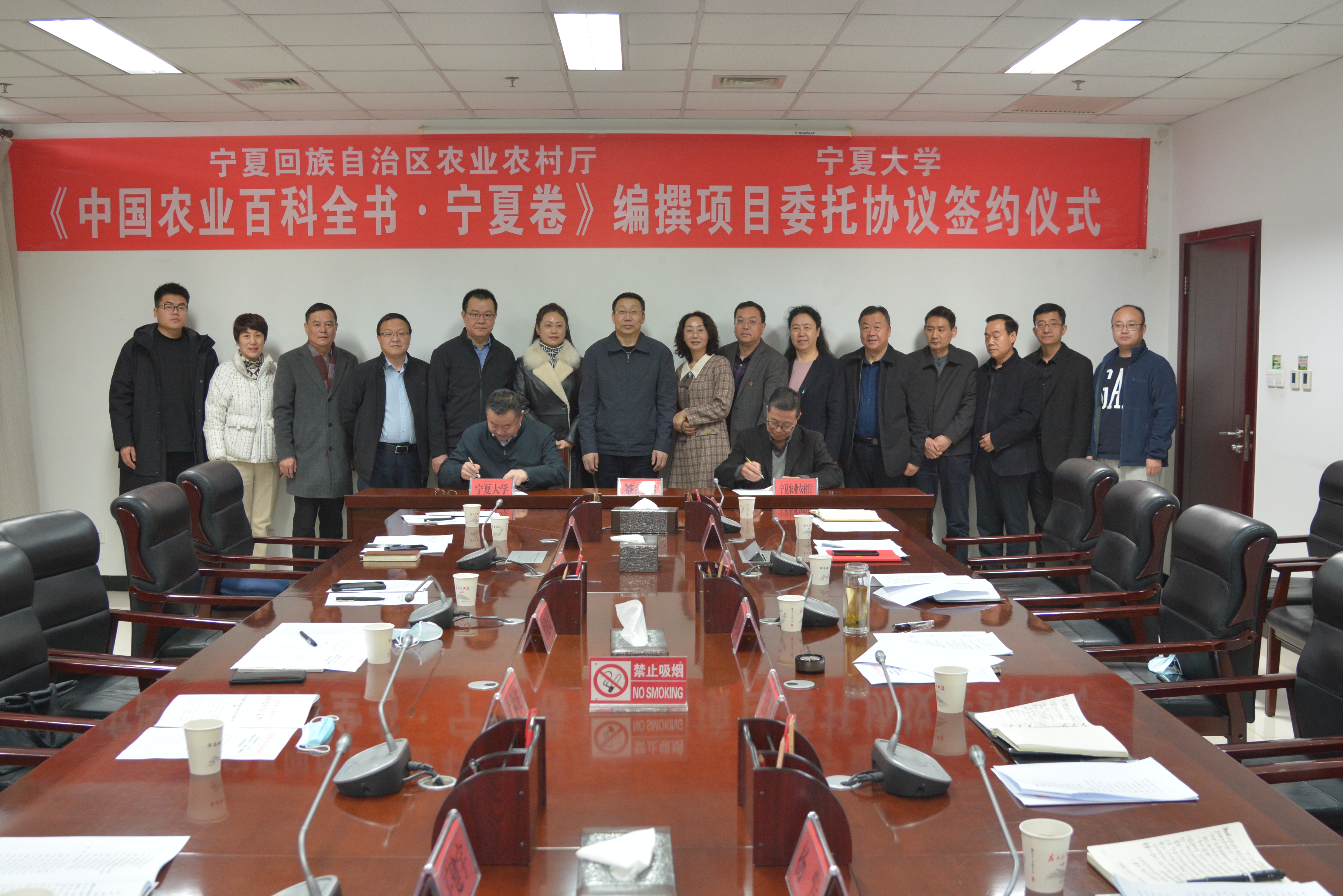 【永利集团304官网新闻中心讯 农学院】2月14日,《中国农业百科全书•宁夏卷》编撰项目委托协议签约仪式在宁夏农业农村厅举行。农业农村厅党组成员罗晓瑜,二级巡视员王洪波,校党委常委、副校长李建设出席签约仪式。