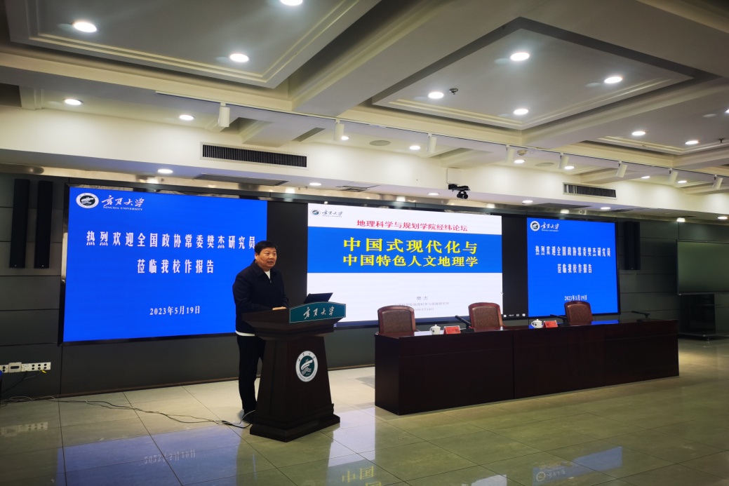 【永利集团304官网新闻中心讯 地理科学与规划学院】5月19日,全国政协常委、中国科学院地理科学与资源研究所樊杰研究员应邀来校作《中国式现代化与中国特色人文地理学》的主题报告。报告会前,校党委书记李星会见了樊杰一行,校党委常委、副校长李建设陪同会见。地理科学与规划学院院长刘小鹏主持报告会。