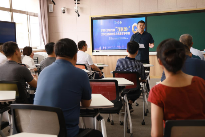 大赛特邀区内高校双创教育专家、知名企业高管、宁夏“互联网+”大赛专委会委员等担任大赛评委工作。比赛前,大赛组委会召开评审会议,对评委进行分组并就大赛评审规则进行要求。