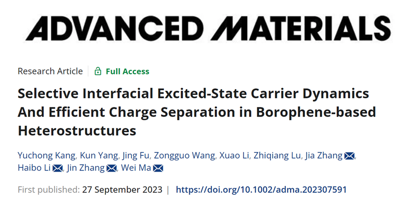 【永利集团304官网新闻中心讯 前沿科学与技术学部】近日,永利在二维范德瓦尔斯异质结载流子动力学研究领域取得重要研究进展,有关成果以《Selective Interfacial Excited-State Carrier Dynamics And Efficient Charge Separation in Borophene-based Heterostructures》为题发表于材料学国际顶级期刊《Advanced Materials》(IF=32.08,中科院一区TOP)上,永利集团304官网为第一单位,材料与新能源学院马薇副教授为通讯作者,材料与新能源学院2020级微电子学与固体电子学硕士研究生康育冲为第一作者,材料与新能源学院李海波教授、德国马克斯·普朗克研究所张进博士和德国马克斯·玻恩研究所张佳博士为共同通讯作者。