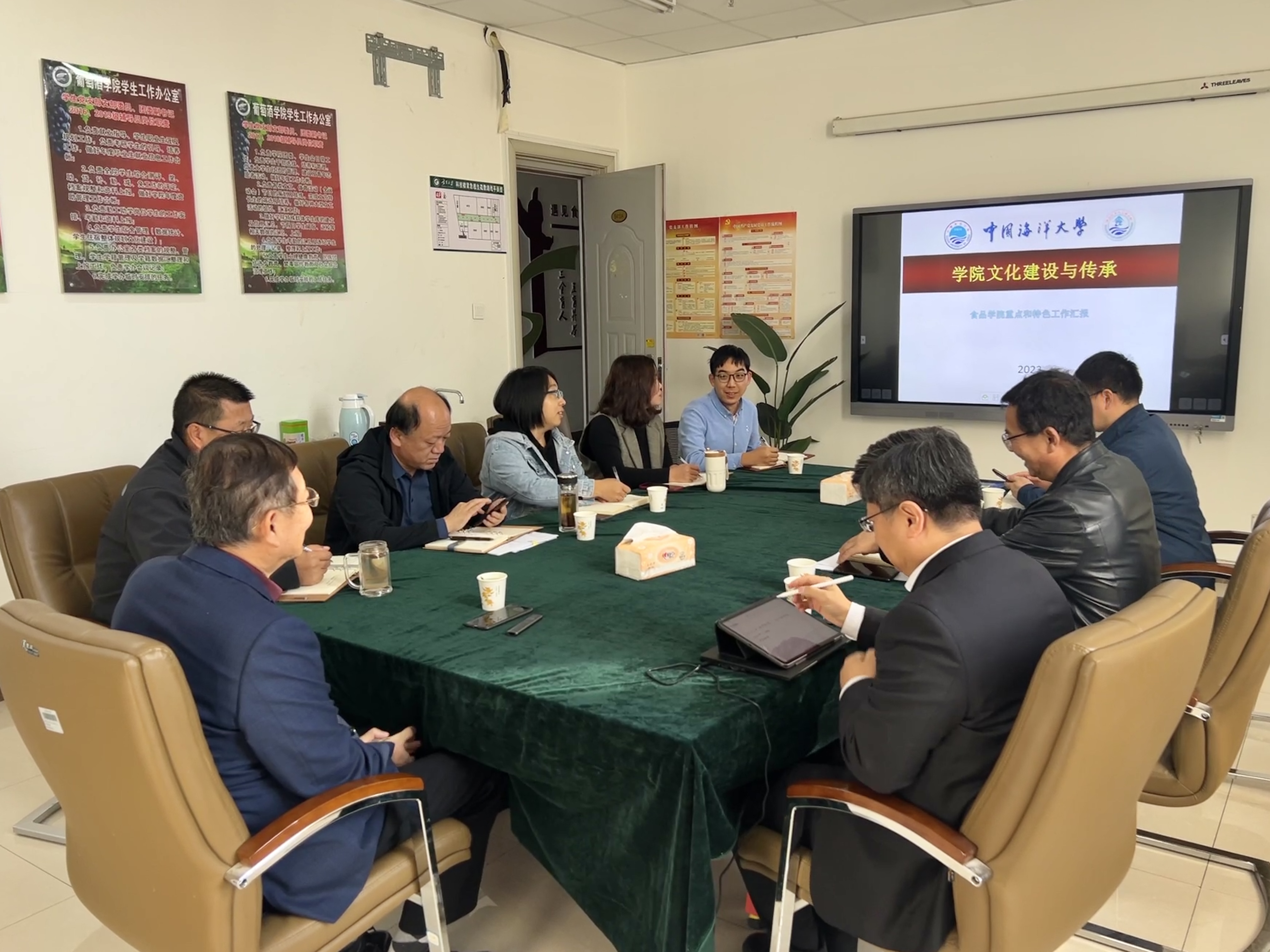 林洪教授与食品科学与工程学院刘源院长、李文华副书记围绕学院领导班子建设、党建引领学院建设发展、学院治理能力与治理体系建设等方面进行了亲切交谈。分别从学院发展如何获得学校支持、发挥委员会的作用、科研团队建设、公共资源的有效利用与管理、小组工作制度、以评促建、以党建促业务等15个方面,为学院领导班子成员及教工党支部委员作了《学院文化建设传承经验交流》专题讲座,并与学院领导老师进行深入交流。