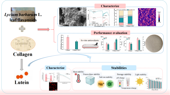 【永利集团304官网新闻中心讯 食品科学与工程学院】近日,食品科学与工程学院食品营养与健康创新团队范艳丽教授课题组在Food Research International(1区,IF8.1)发表题为“Stability protection of lutein emulsions by utilizing a functional conjugate of collagen andLycium barbarumL.leaf flavonoid”的研究性论文(胶原蛋白和枸杞叶黄酮的功能复合物对叶黄素乳液稳定性的保护作用)。