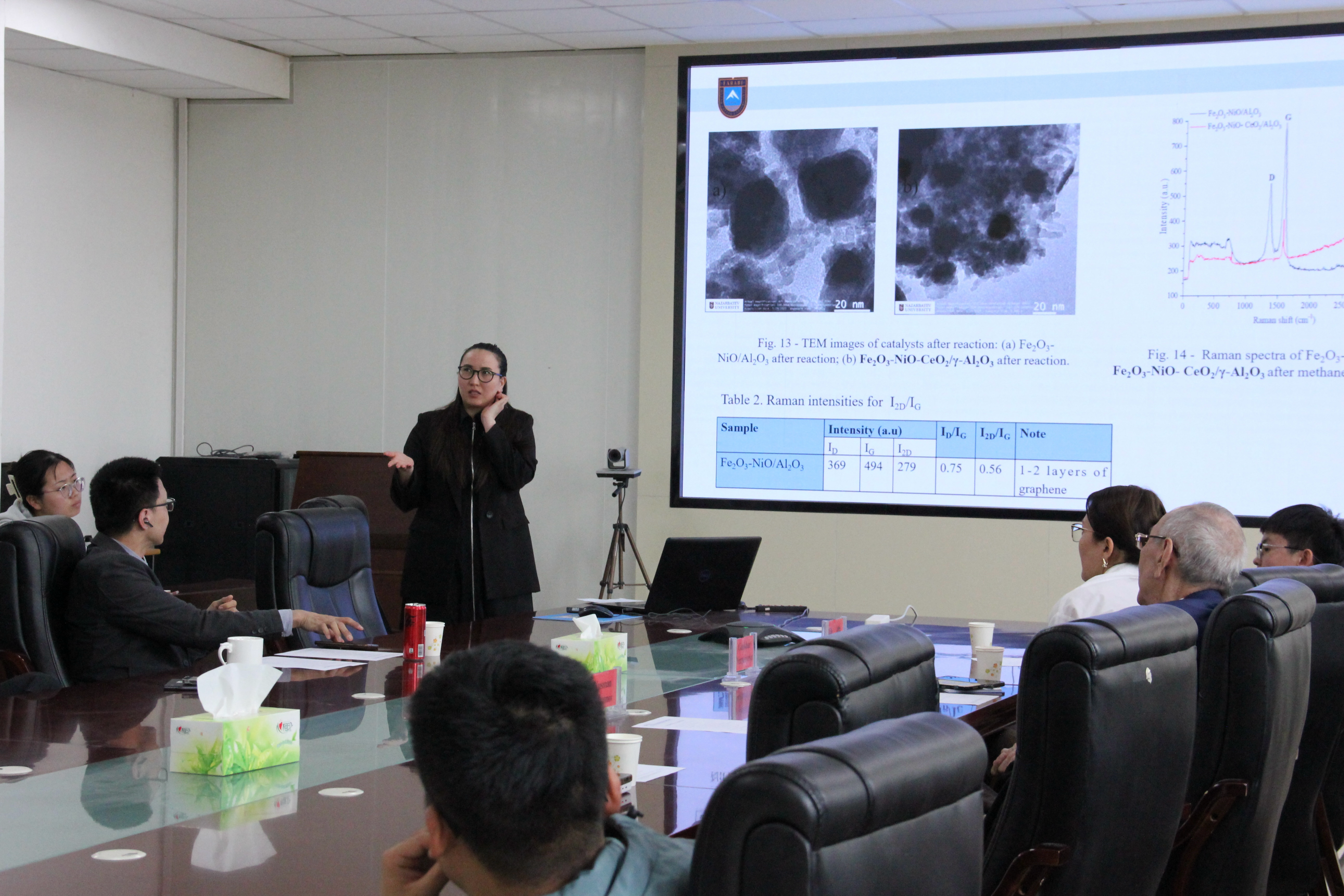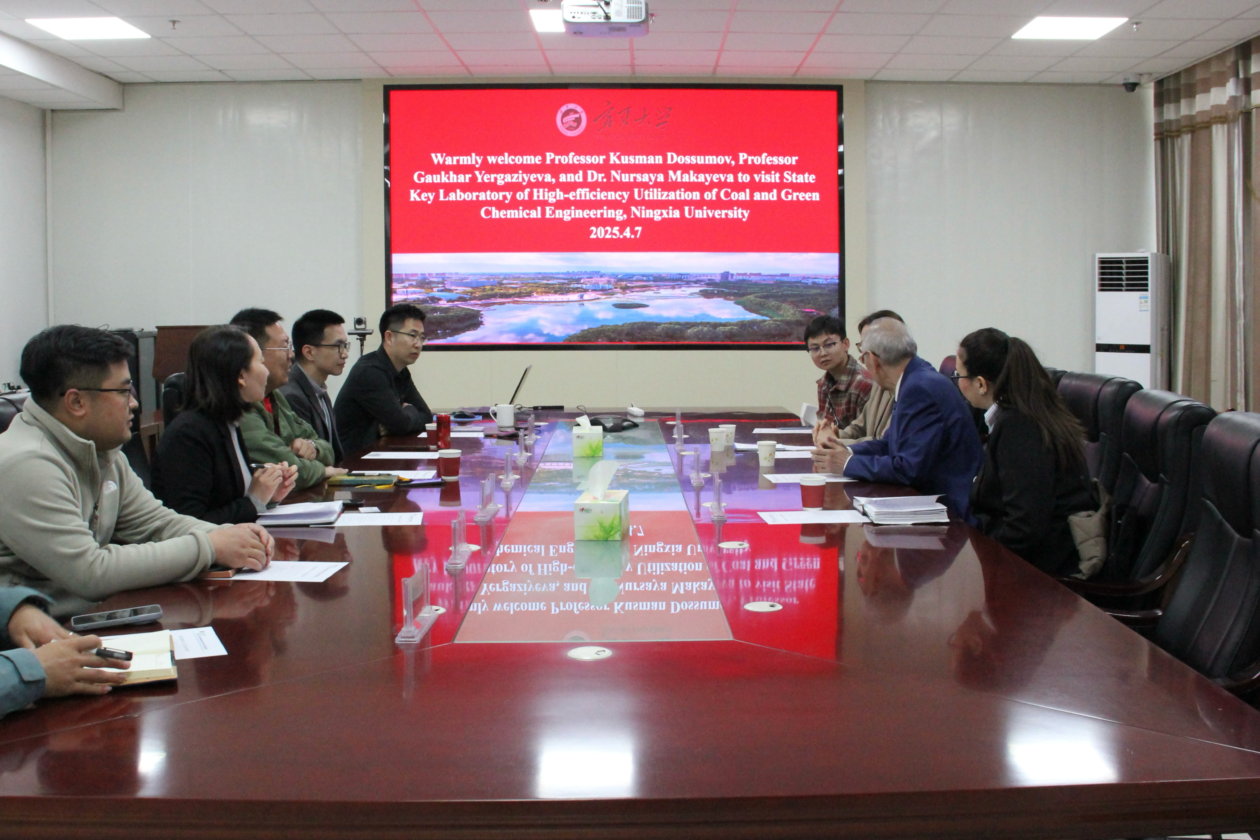 在报告会上,张鹏飞教授详细介绍了化学化工学院及国家重点实验室的发展历程、学科建设、科研进展及未来规划。刘美玲对外宾的到来表示了热烈欢迎,并介绍了永利国际留学生培养情况。Kusman Dossumov院士就哈萨克国立大学的办学特色、学科优势及国际合作成果进行了全面阐述,并表达了与永利集团304官网深化科研合作、共促学术发展的诚挚意愿。