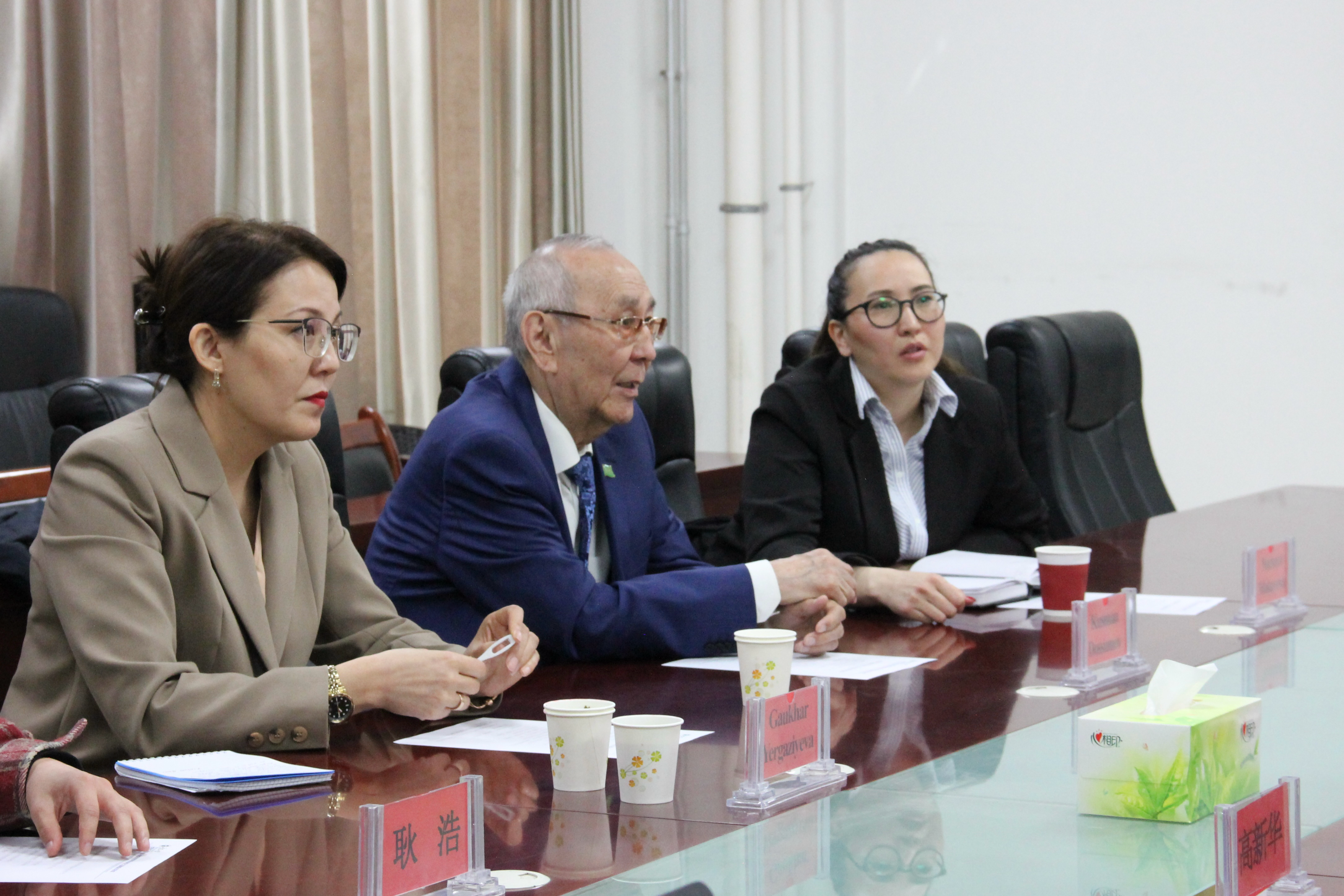 【永利集团304官网新闻中心讯 化学化工学院】4月7日上午,哈萨克斯坦科学院科学院院士、哈萨克国立大学(Al-Farabi Kazakh National University)Kusman Dossumov教授一行三人莅临我院进行学术访问。化学化工学院院长张鹏飞主持了交流会议,国际教育学院副院长刘美玲、化学化工学院刘晰教授以及高新华研究员等共同出席了本次活动。