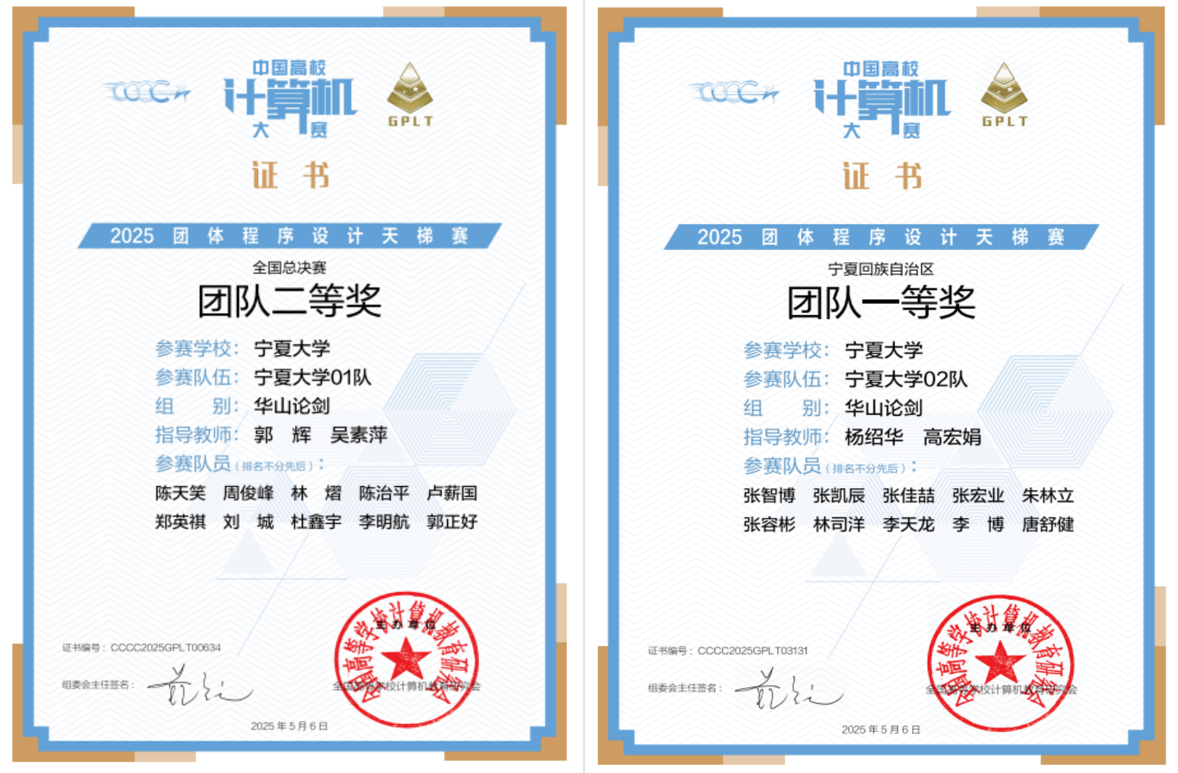 【永利集团304官网新闻中心讯 信息工程学院】近日,第十届全国高校计算机大赛-团体程序设计天梯赛全国总决赛结果正式公布,由信息工程学院郭辉、吴素萍、杨绍华等教师指导的参赛队伍获得全国团队二等奖1项、宁夏回族自治区团队一等奖2项和二等奖1项,陈天笑、周俊峰、林熠、陈治平同学荣获国家级个人二等奖、卢薪国同学荣获国家级个人三等奖,取得了该项赛事中的最好成绩。