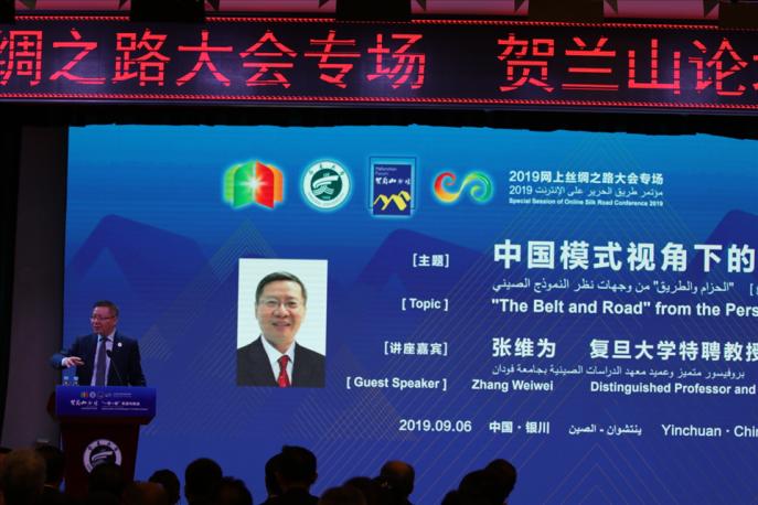 当天,复旦大学中国研究院院长张维为以“中国模式视角下的‘一带一路’”为题作了讲座。在高端对话环节,埃及图书总局局长海赛姆·哈吉·阿里、摩洛哥国家人类发展研究智库秘书长哈桑·曼苏里、原中国中东问题特使吴思科、泰国博仁大学校长达丽噶·拉塔毗帕、迪拜“拥抱中国”执委会投资顾问乌埃斯拉蒂·瓦法等嘉宾围绕“解读中国企业‘走出去’的政策导向”开展交流讨论。