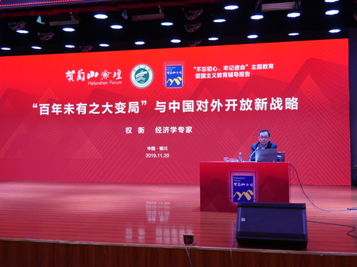 11月20日,“贺兰山论坛”第八场——“‘百年未有之大变局’与中国对外开放新战略”在永利集团304官网开讲,上海市社会科学界联合会党组书记、专职副主席权衡为永利集团304官网师生们做了一场精彩的学术报告。