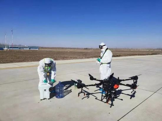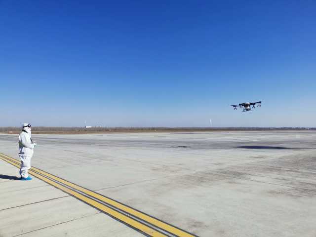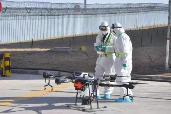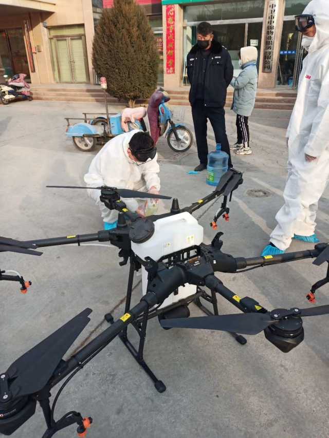 石义泰说,无人机每次可承载消毒液体16公斤,单次覆盖面积能达2万平方米,效率是人工消毒的50倍,还能有效避免传统人工消毒皮肤受到消毒液侵蚀,极大节省了时间和人力,能有效提高疫情防控力度。
