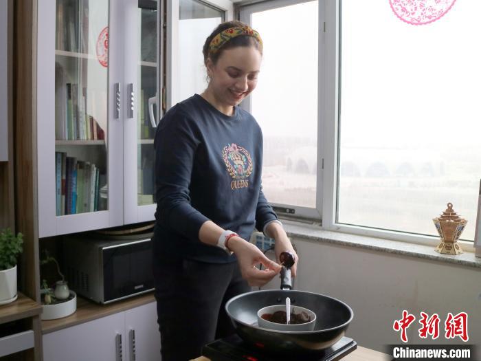 笑笑在厨房里熟练地开火,忙活了起来。她将元宵煮熟后马上进行冷冻,再把浓郁的巧克力酱包裹在元宵表面,巧克力酱遇冷后迅速凝固成了脆皮。“这种中西合璧的碰撞,不觉间让人幸福感‘爆棚’。”笑笑品尝着做好的元宵赞不绝口,“疫情期间宅在宿舍,在短视频软件上看到大家都在学做凉皮、炸油条……现在,我也经常在短视频平台上学习制作中国美食、了解中国文化,分享在中国的生活日常。”