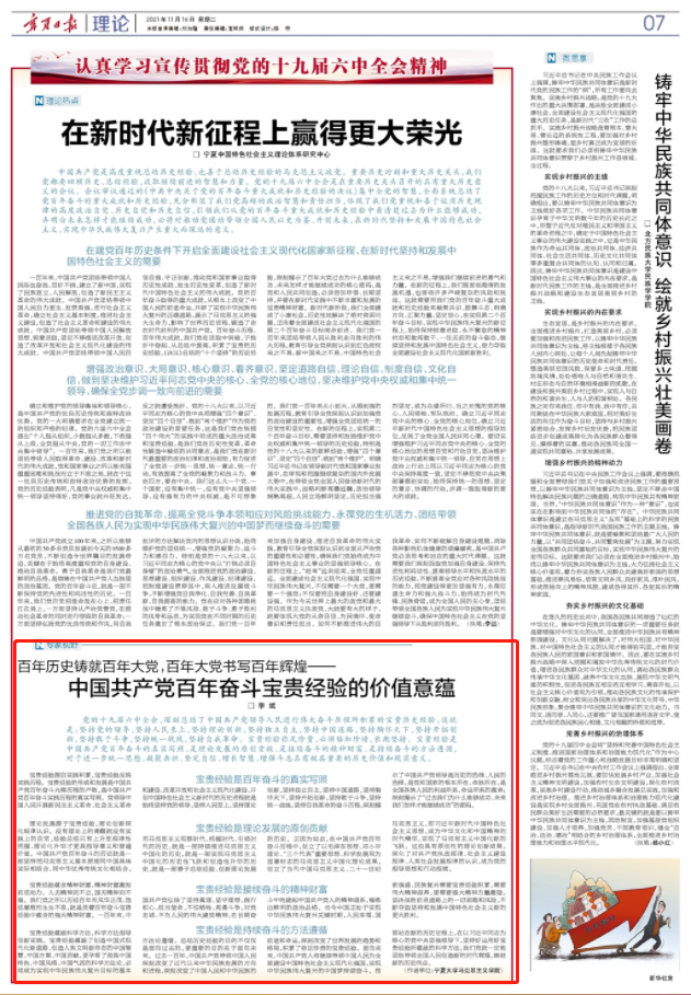 理论发展源于宝贵经验,理论创新深化规律认识。没有理论上的清醒就没有实践上的自觉,经验总结只有上升至规律性把握、理论化升华才更具指导意义和普遍价值。中国共产党百年奋斗的历史就是一部坚持把马克思主义基本原理同中国具体实际相结合、同中华优秀传统文化相结合,用马克思主义观察时代、把握时代、引领时代的历史,就是一部持续推进马克思主义中国化的历史,就是一部实现马克思主义中国化的历史性飞跃和创造性升华的历史,就是一部善于总结经验、创新理论发展的历史。正因为如此,在中国共产党百年奋斗历程中,创立了以毛泽东思想、邓小平理论、“三个代表”重要思想、科学发展观为显著标志的马克思主义中国化理论成果,创立了当代中国马克思主义、二十一世纪马克思主义,即习近平新时代中国特色社会主义思想,成为中华文化和中国精神的时代精华,实现了马克思主义中国化新的飞跃。这些具有原创性的理论创新成果,深化了对共产党执政规律、社会主义建设规律、人类社会发展规律的认识,成为党的指导思想和行动指南。