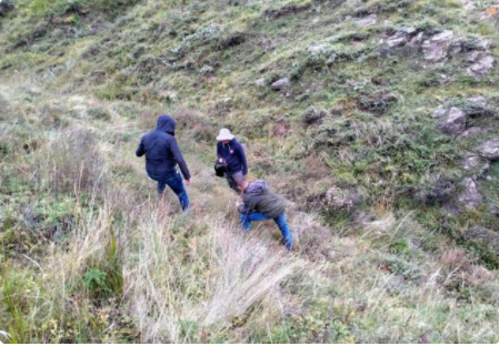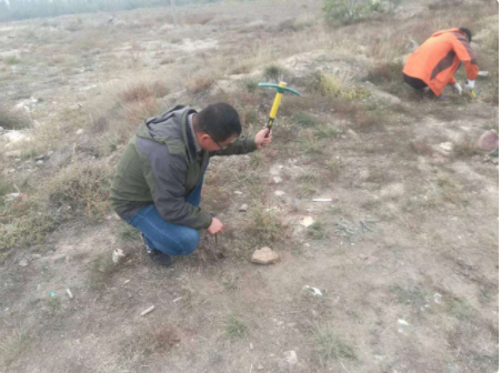 伏兵哲与科研团队在海原南华山采集草种 李小云供图