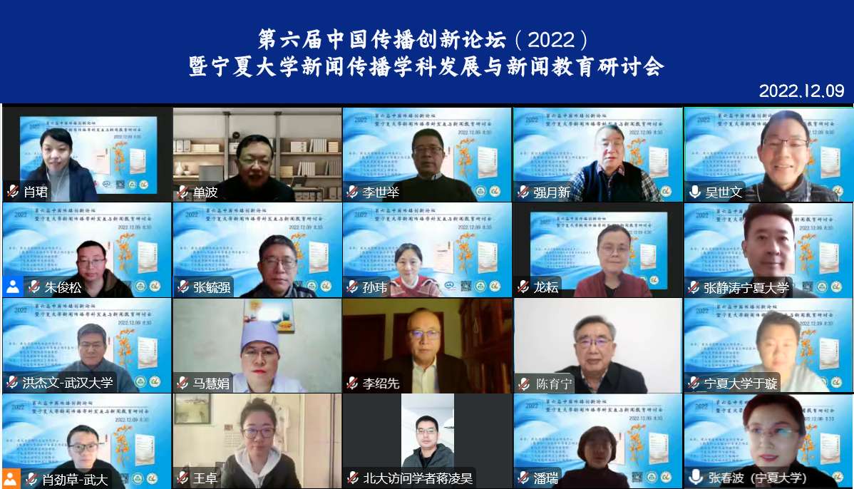 近日,武汉大学媒体发展研究中心、武汉大学新闻与传播学院、永利集团304官网新闻传播学院联合主办“第六届中国传播创新论坛(2022)暨永利集团304官网新闻传播学科发展与新闻教育研讨会”“第五届中国传播创新研究工作坊(2022)”。
