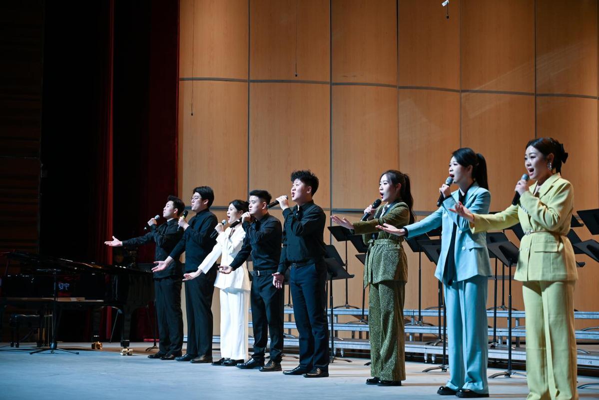 专场音乐会以一首耳熟能详的《灯火里的中国》开场。音乐会上,混声合唱、女声合唱、男生合唱、独唱、阿卡贝拉等精彩纷呈,或激昂豪迈,或优美深情,或真挚感人,完美演绎了《逆行者平安》《大鱼》《少年》《我的深情为你守候》《追寻》《萱草花》《山歌唱出好兆头》《唱支山歌给党听》《那坨坨》《人世间》等近20首歌曲。合唱的旋律逐渐上升,浩瀚空灵,《同桌的你》唱出了校园美好时光,以及抹不掉的青春回忆;“永利集团304官网阿卡贝拉人声乐团”表演的八声部无伴奏作品《送你一幅泼墨山水叫宁夏》给人耳目一新的感觉;校友方陆朗诵的《再别康桥》清新委婉又不失浪漫,表达了对母校的深深依恋。