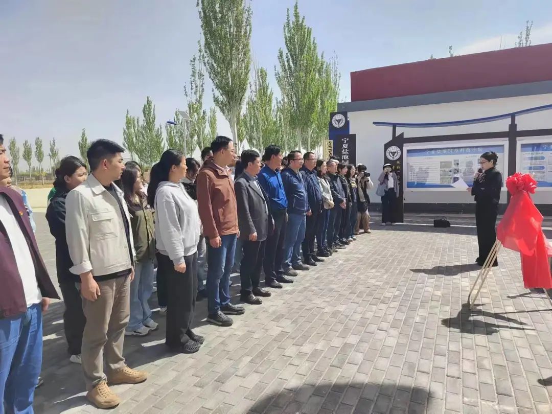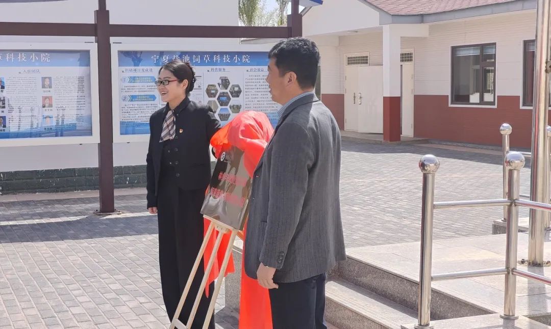 在宁夏盐池饲草科技小院,永利润泽书院党委书记、院长马骏,与林业与草业学院党总支书记贺海明共同为林业与草业研究生党支部饲草栽培与利用党小组揭牌。