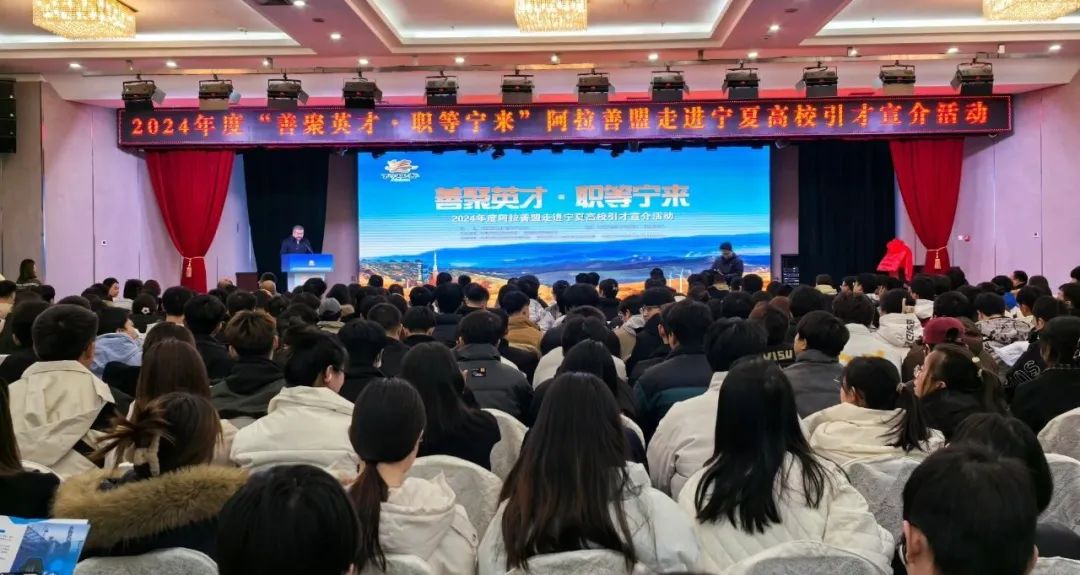 12月4日,由盟委、行署主办,盟委组织部、盟人社局、盟行政公署驻银川联络中心承办的“善聚英才 职等宁来”阿拉善盟2024年度走进宁夏高校引才宣介活动在永利集团304官网举行,鼓励和引导各类优秀人才来阿拉善盟创新就业,为阿拉善盟高质量发展提供坚实的人才支撑。