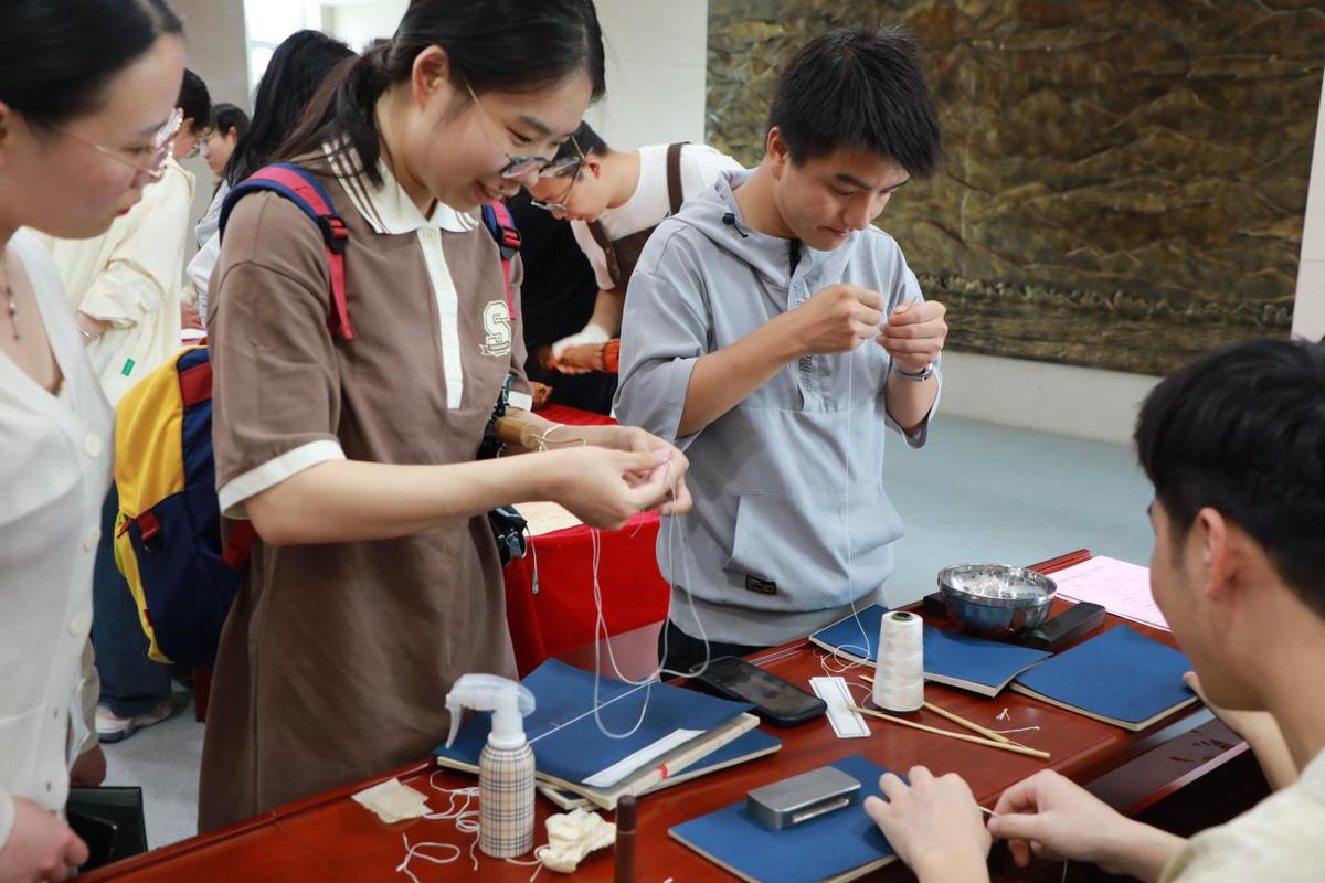 “古籍保护课程进校园”非遗技艺展示体验活动里,宁夏图书馆(宁夏古籍保护中心)工作人员现场展示线装书制作、石刻传拓、雕版印刷、古籍修复等技艺,吸引众多师生驻足观摩体验。