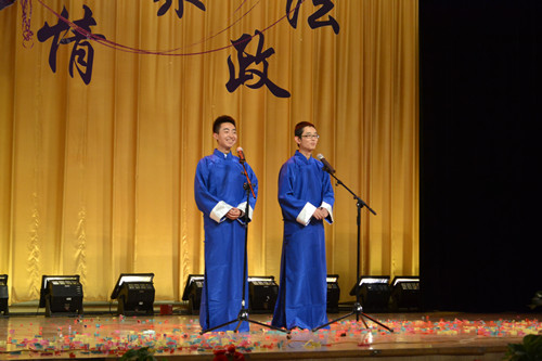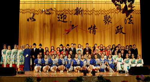 随后,政法学院“以心迎新 情聚政法”迎新生文艺晚会在同学们激情四射、充满动感的精彩演绎下拉开序幕。歌舞、乐器、相声、朗诵等形式多元、风格迥异的节目轮番上映,阵阵喝彩充溢耳边,如潮掌声经久不息。婀娜多姿的开场舞《la song》、雄浑大气的舞蹈《吉祥谣》、幽默风趣的相声《满腹经纶》、悠扬婉转的歌曲《映山红》、深情激扬的配乐诗朗诵《相信未来》等秀出了政法学子的风采,展现了当代大学生的无限活力。伴着一曲《年轻的战场》,晚会在友谊、力量与团结的氛围中最终落下帷幕。